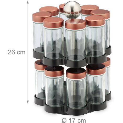 Relaxdays Gewürzkarussell - Drehbares Gewürzregal Mit 8 Dosen | Küchenorganizer Schwarz/Transparent