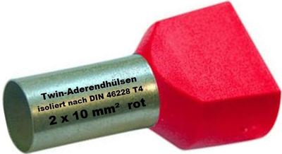 50 Stück Twin Aderendhülsen 10mm² - Teilisoliert Für Kabelverbindungen