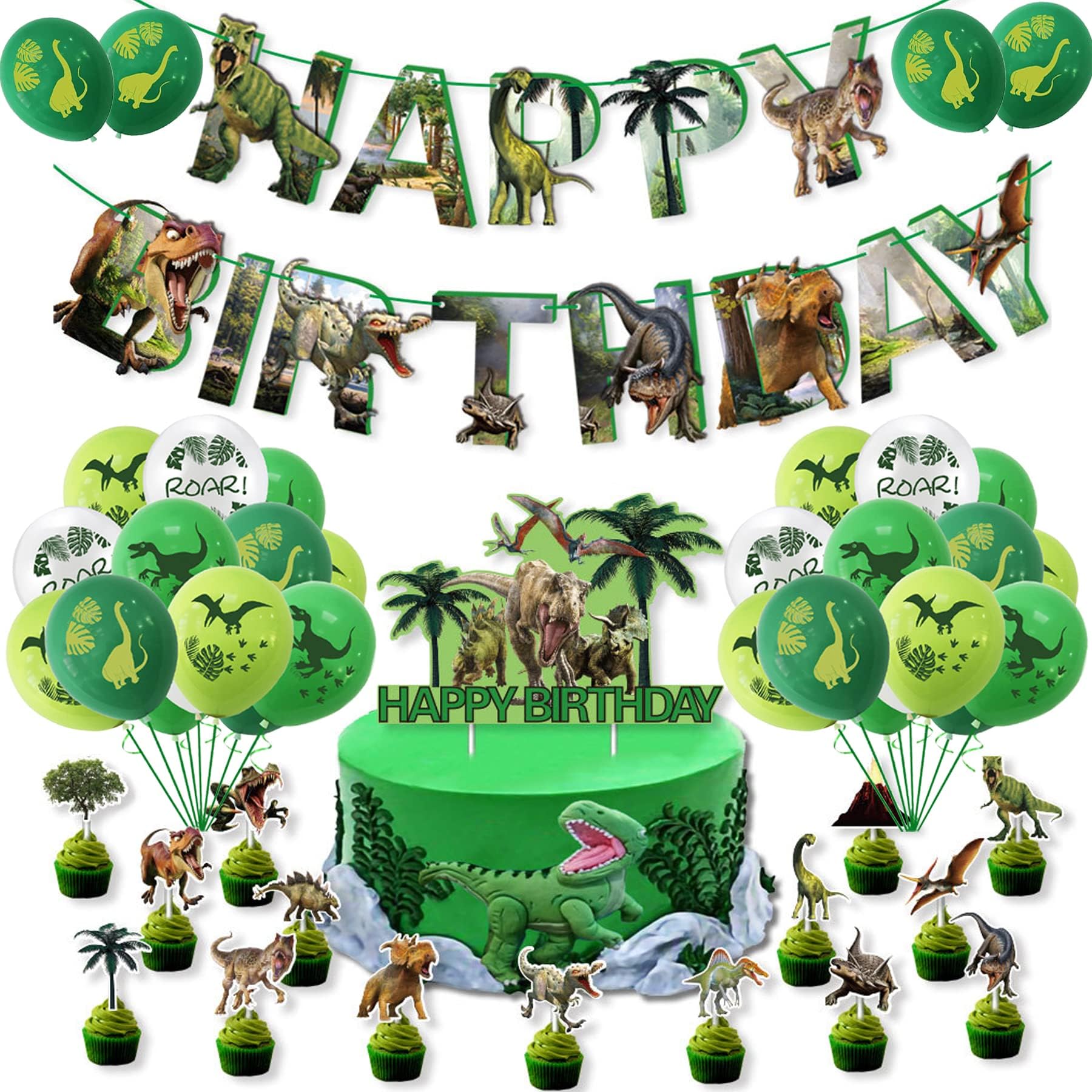 Dino Geburtstag Deko 5 Jahre - Ballon Set Mit Dino & Zahl 5 Luftballons Für Kinderparty