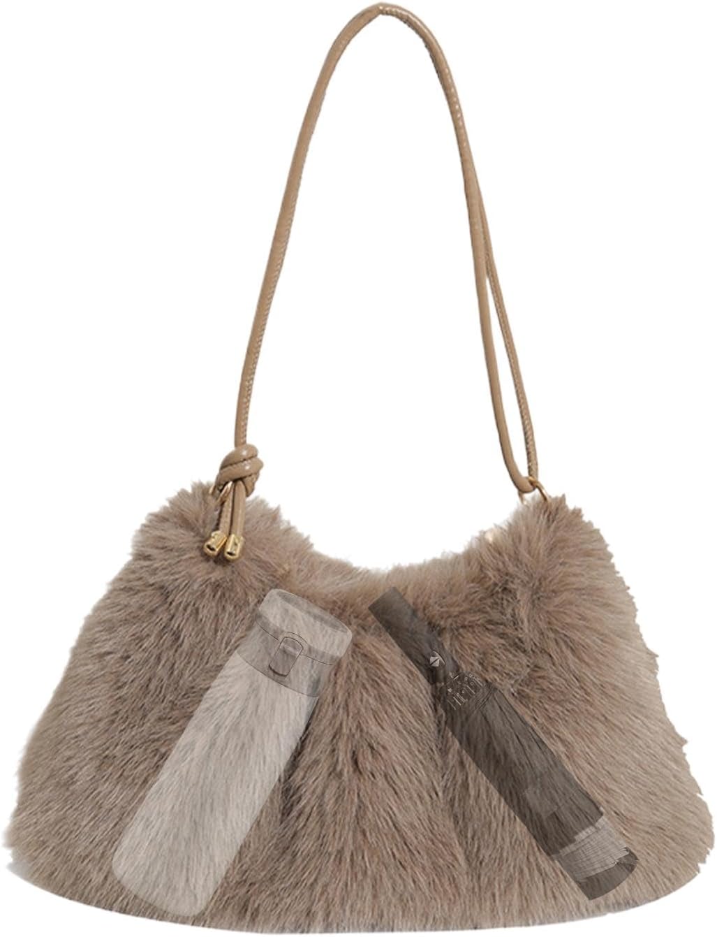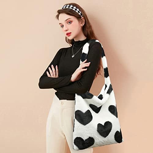 Damen Plüsch Handtasche Flauschig - Große Umhängetasche Mit Reißverschluss Kawaii Style