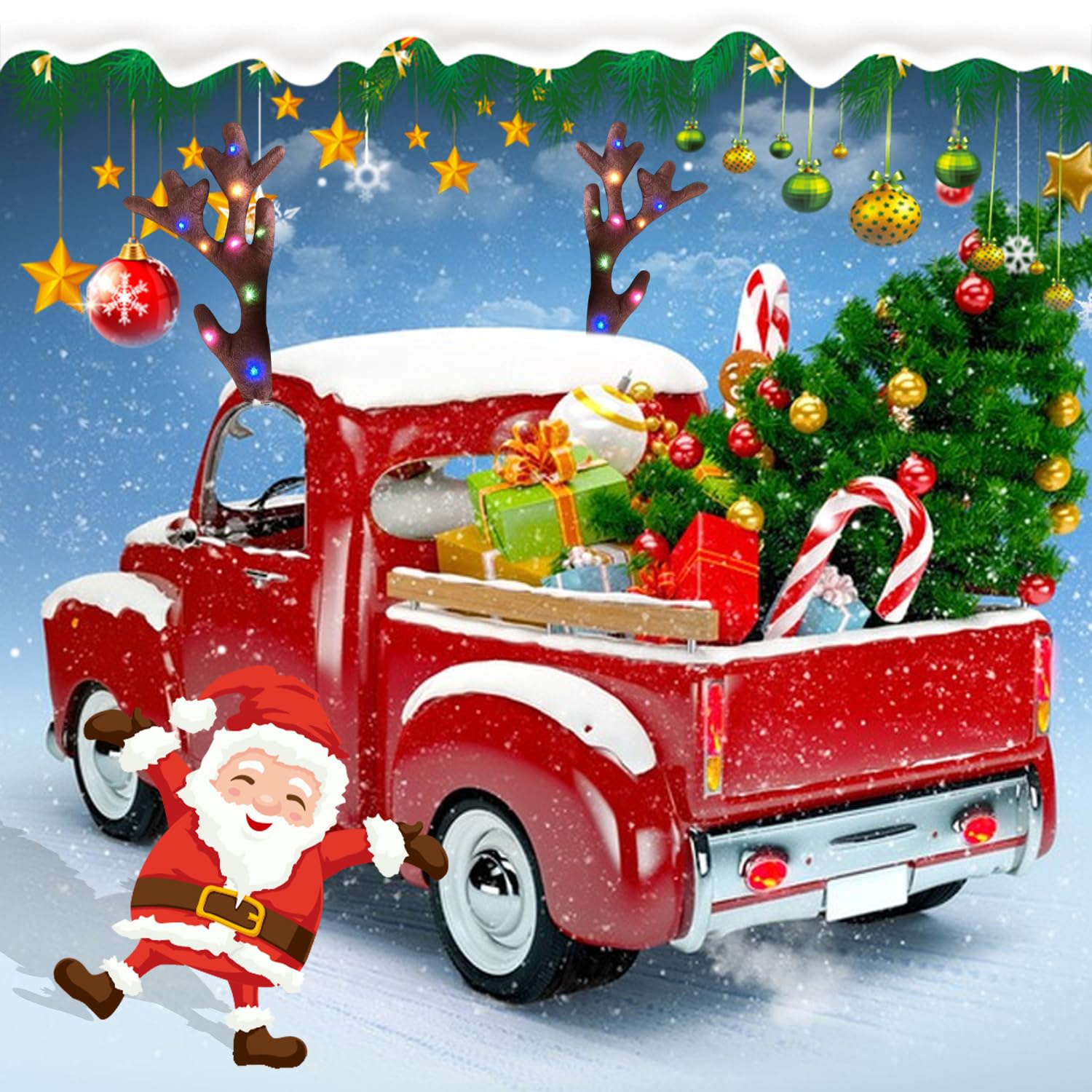 Weihnachts Auto Geweihe - Plüsch Rentier Geweih Deko Für Fahrzeug 43 Cm