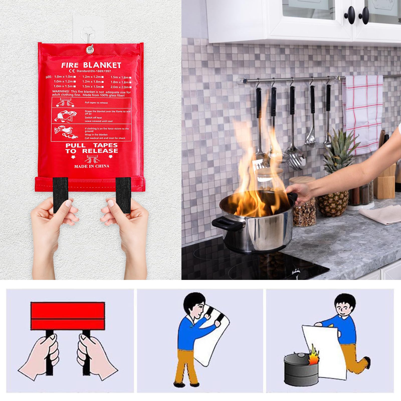 2 Stück Feuerlöschdecken 1,2x1,2m - Für Fettbrände In Küche & Auto