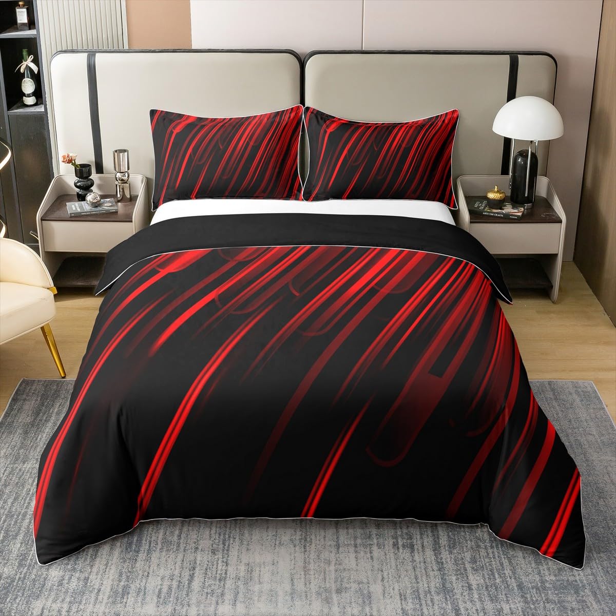 Diese coole rote Ombre-Bettwäsche bringt richtig Style in dein Jugendzimmer! Das abstrakte Design in Rot und Schwarz sieht modern aus und passt perfekt zu jugendlichen Einrichtungen.