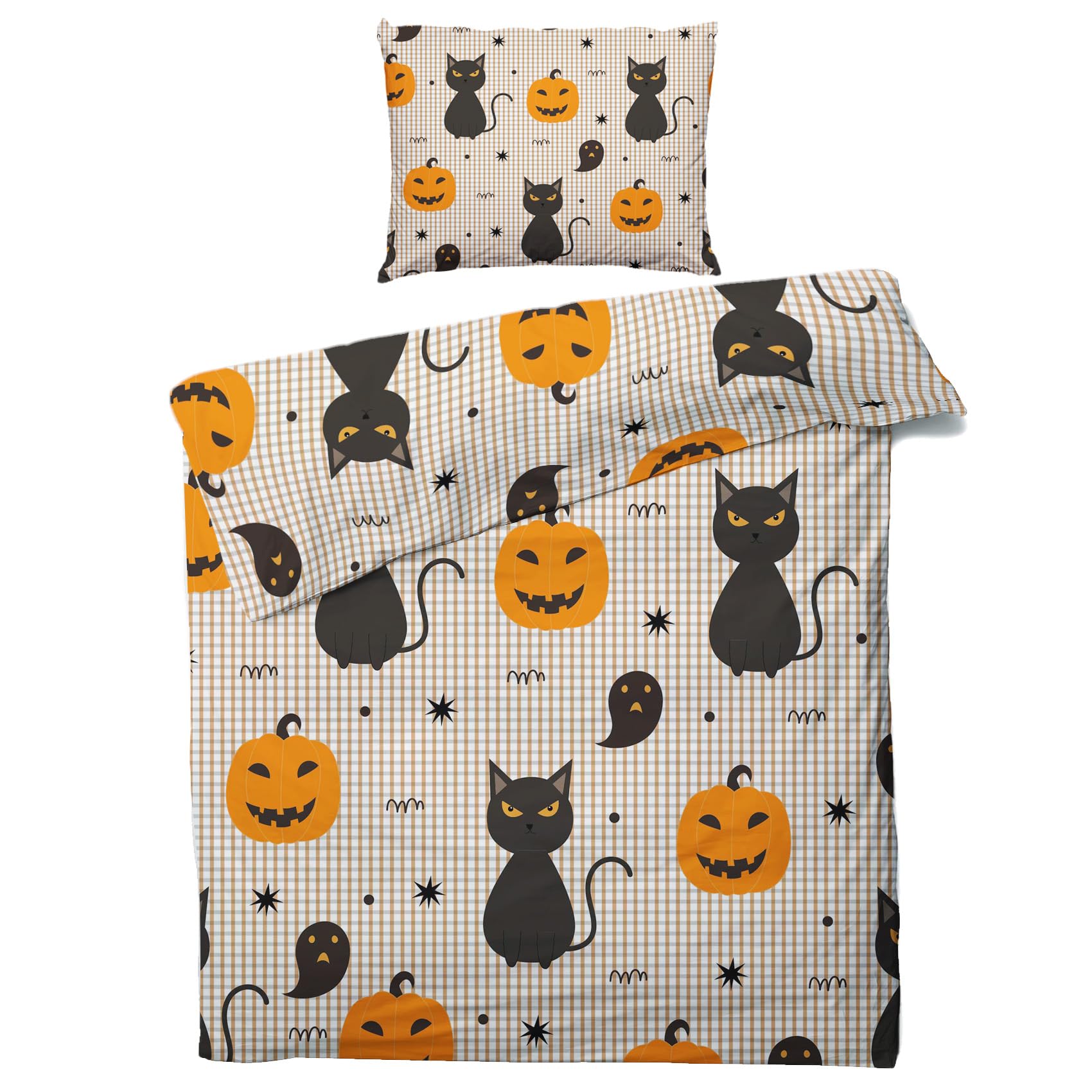 Halloween Bettwäsche 140x200 - Hexen & Kürbisse, Weiche Mikrofaser, Wendebettwäsche Mit Reißverschluss