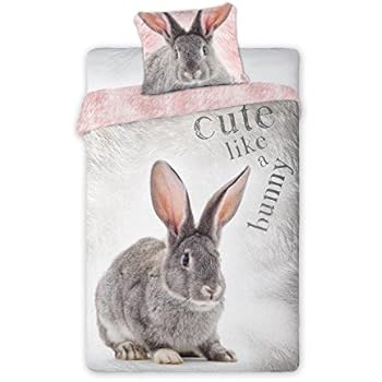 Kinder Bettwäsche 2-tlg Mit Kaninchen Motiv - 135x200cm Microfaser Bezug Mit Reißverschluss