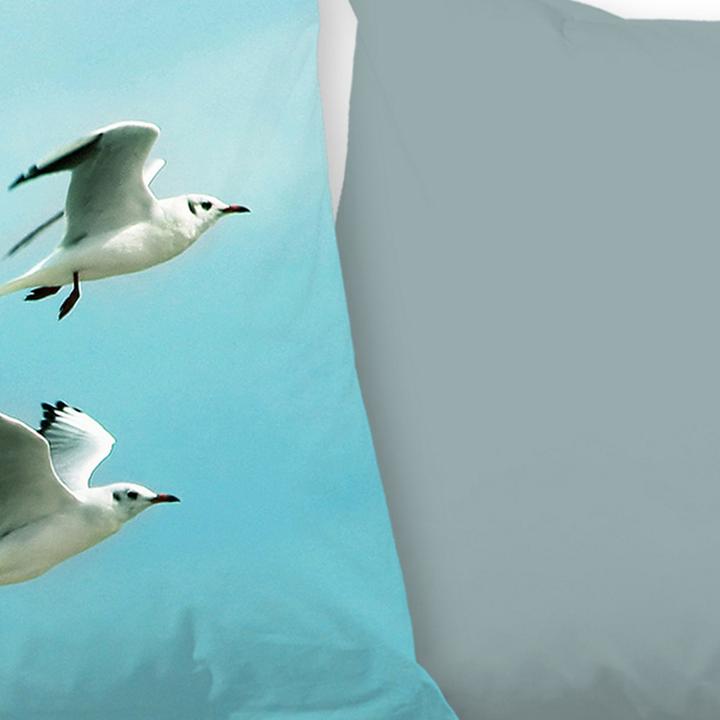 Oh, diese Good Morning Bettwäsche ist ja mal total schön! Das 'Brisa' Design mit den Möwen über dem Meer bringt maritimen Charme ins Schlafzimmer. Aus 100% Renforcé Baumwolle - super weich, atmungsaktiv und strapazierfähig. Die Rückseite ist uni gehalten und setzt hübsche Kontraste. Mit praktischem Marken-Reißverschluss ist sie ganz einfach zu beziehen. Größe: 155x220 cm plus 80x80 cm fürs Kopfkissen. Bei 40° waschbar, bei niedriger Temperatur trocknen und wenig bügeln - also total pflegeleicht. Sieht nicht nur gut aus, sondern fühlt sich auch klasse an auf der Haut. Perfekt um vom nächsten Urlaub zu träumen!