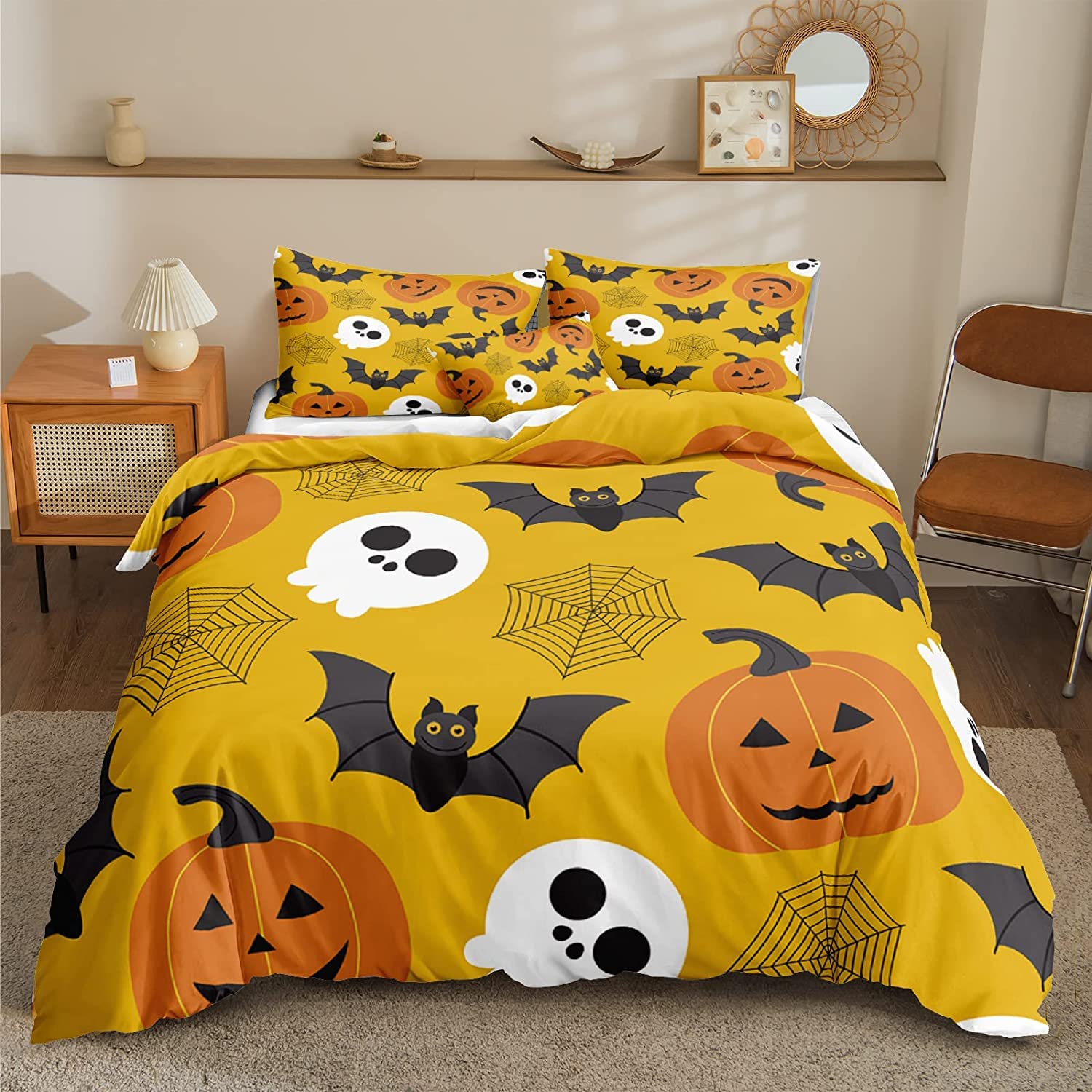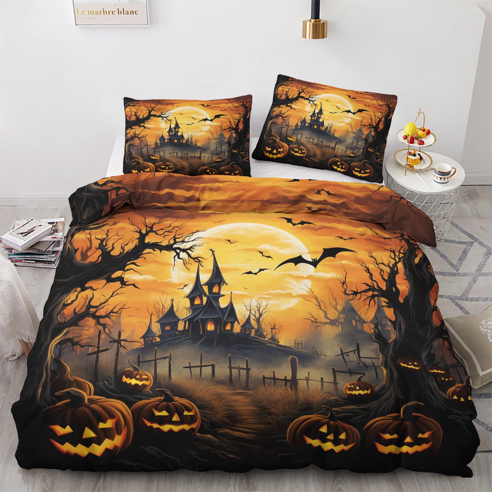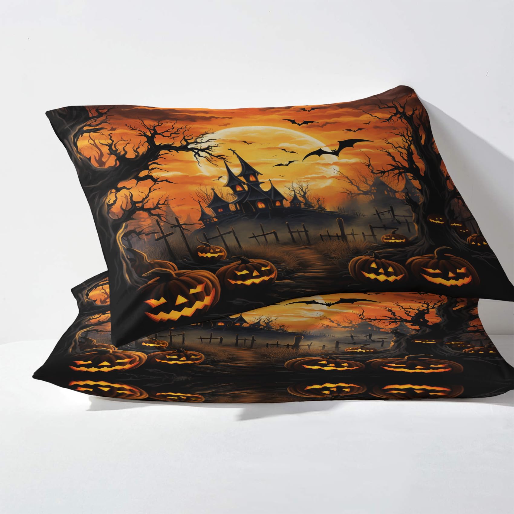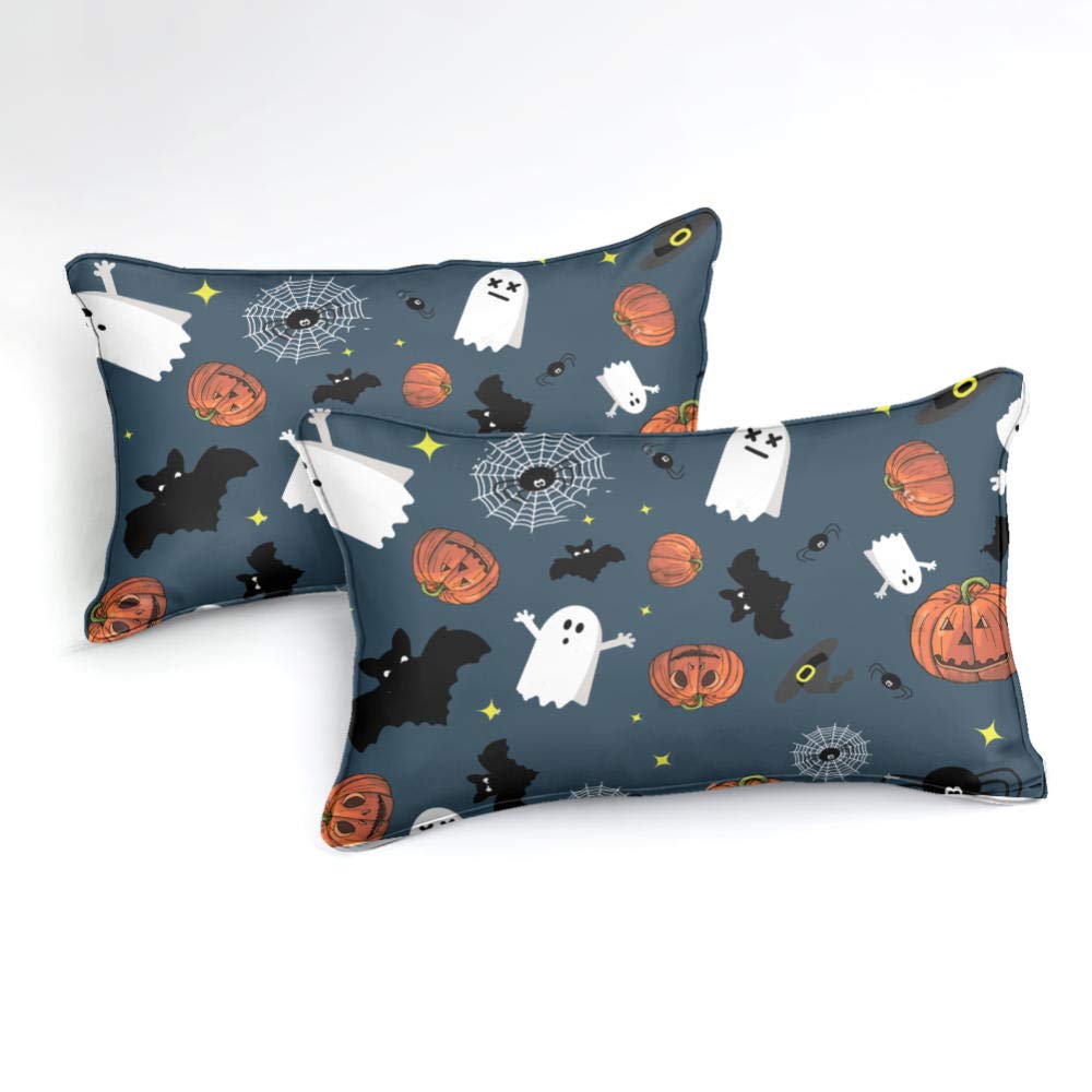 Halloween Bettwäsche Set 135x200cm - Kürbis & Fledermaus Design - Microfaser Wendebettwäsche
