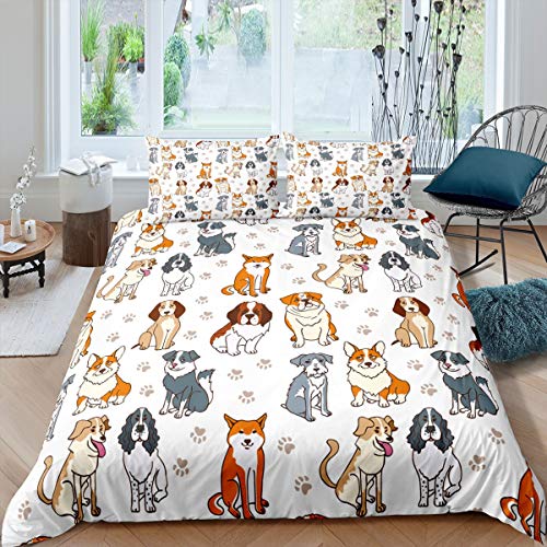 Tier Pfotenabdrücke Bettwäsche Set 3-teilig Mikrofaser - Hundepfoten Design 135x200 Cm Mit 2 Kissenbezügen
