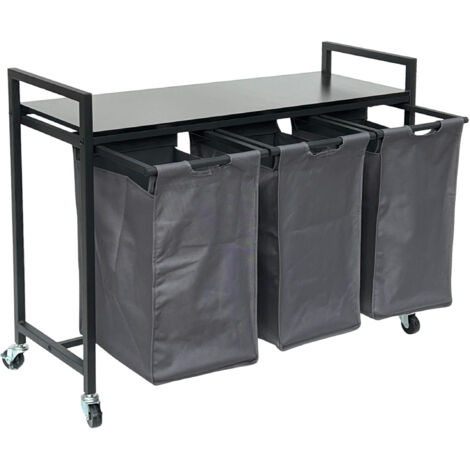 Super praktisch: Dieser Wäschewagen hat gleich drei große Fächer, in denen du deine Wäsche super sortieren kannst. Mit den 4 Rollen schiebst du ihn ganz easy durch die Wohnung - zwei davon haben sogar Bremsen! Die Körbe sind abnehmbar und haben Griffe, das macht das Tragen super bequem. Aus robustem Metall gefertigt und mit dieser speziellen Kunststoffbeschichtung, rostet da nichts und kratzt auch kaum. Jedes Fach hält bis zu 10 kg aus. Perfekt nicht nur für schmutzige Wäsche, sondern auch um Bücher, Snacks oder sogar Gemüse darin zu verstauen. Die Belüftung ist auch top, damit's nicht muffig wird. Maße: 123 x 32 x 26 cm, passt auch in kleinere Badezimmer. Einfach aufbauen und sofort nutzen!