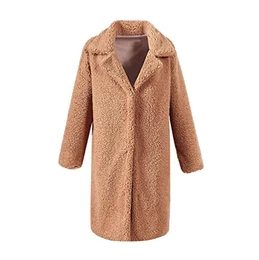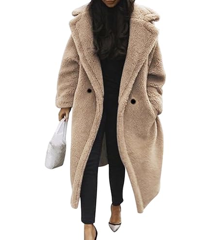 Lang Teddy Kunstplüschmantel Damen - Gefütterter Wintermantel Flauschig Elegant