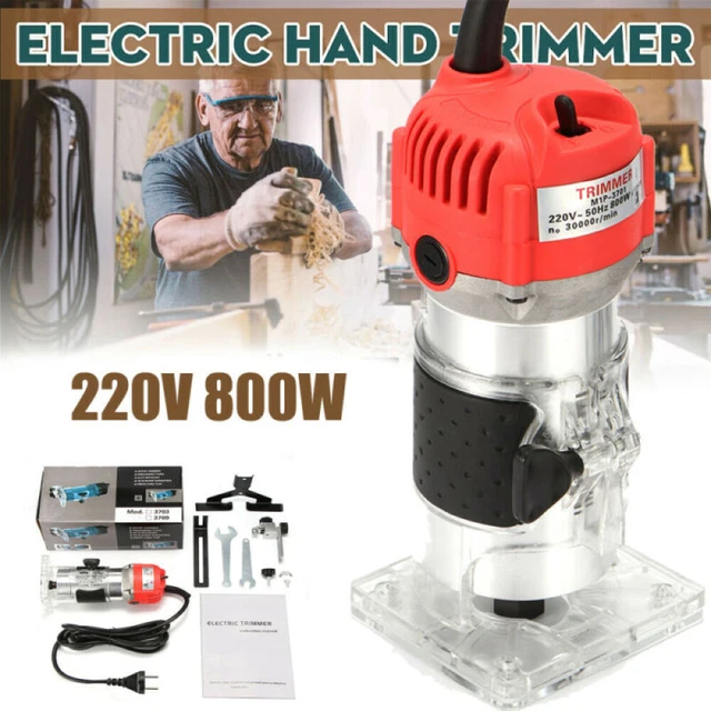 Für alle Holz- und Heimwerker-Fans! Diese 800W starke Oberfräse ist ein echtes Power-Tool. Mit satten 30000 U/min meistert sie jede Holzaufgabe - ob Kanten fräsen, Nuten ziehen oder Profilarbeiten. Der Kupferdraht-Motor liefert konstant Leistung und die Kühlöffnungen sorgen für eine gute Wärmeableitung.\\n\\nPraktisches 1,5m Kabel gibt dir genug Bewegungsfreiheit. Der transparente Sockel ermöglicht dir freie Sicht auf die Arbeitsstelle. Der rutschfeste Silikongriff liegt perfekt in der Hand und der One-Touch-Schalter macht die Bedienung super einfach.\\n\\nTechnische Daten: 220V, 50Hz, 6,35mm Schneiddurchmesser. Aus Aluminium und ABS gefertigt - robust und langlebig. Perfekt für Möbelbau, Heimwerkerprojekte oder professionelle Holzbearbeitung. Einfach das Fräsbit einspannen, Tiefe einstellen und los geht's! Achte vor dem ersten Einsatz auf die Sicherheitshinweise - dann steht perfekten Fräs-Ergebnissen nichts mehr im Weg.