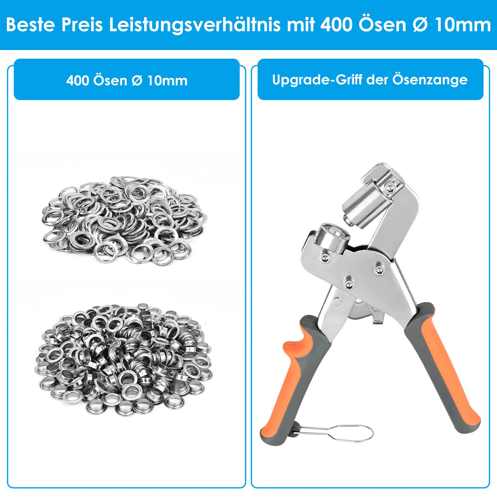 Professionelle Ösenarbeiten leicht gemacht! Dieses umfangreiche REDKNOT Set enthält alles, was du für perfekte Ösen benötigst: 1 Ösenzange, 300 Ösen in 6mm, 300 Ösen in 10mm, sowie die passenden Stanzwerkzeuge. Das geniale Feature: Der magnetische Zangenkopf fixiert die Öse automatisch und verhindert Verrutschen während der Arbeit. Einfach die gewünschte Größe wählen, Stanzwerkzeug einsetzen und mit dem ergonomischen Anti-Rutsch-Griff drücken - schon sitzt die Öse perfekt! Aus robustem Kohlenstoffstahl gefertigt, hält die Zange auch bei intensiver Nutzung lange. Ideal für Lederarbeiten, Stoffe, Planen, Zelte, Gürtel, Taschen und DIY-Projekte. Die verdickten Edelstahl-Ösen rosten nicht und sorgen für saubere Ergebnisse. Auch für Reparaturen an Kleidung und Schuhen super praktisch. Mit diesem Komplett-Set wirst du zum Ösen-Profi - bestell jetzt und leg los!