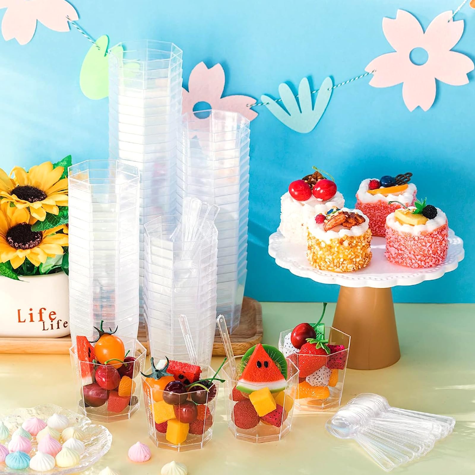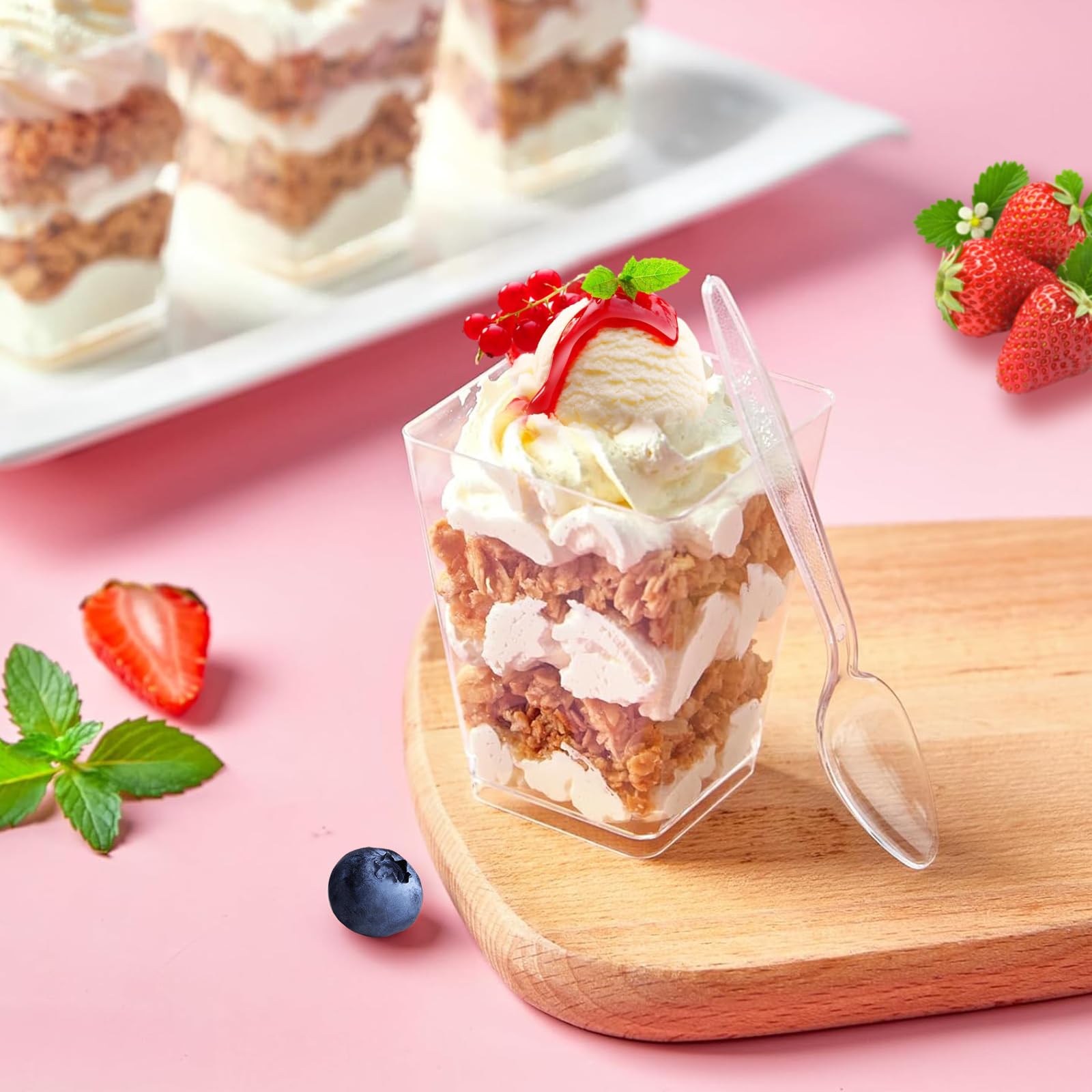Perfekt für deine nächste Party! 30 transparente Dessertgläser aus Plastik, jedes 160ml groß - und das Beste: Jedes Glas kommt mit Deckel und Löffel! Die Deckel verhindern, dass Staub rein kommt und die Löffel sind direkt dabei. Super praktisch! Aus hochwertigem, ungiftigem Kunststoff, der nicht riecht und nicht so leicht bricht. Die Oberfläche ist glatt und scharfkantenfrei - also total sicher in der Handhabung. Und das Coole: Du kannst die Gläser immer wieder verwenden! Einfach abwaschen, trocknen und beim nächsten Mal wieder benutzen. Sie sind stapelbar und sparen so mega Platz im Schrank. Ob für Kindergeburtstage, Hochzeiten, Weihnachten oder einfach nur fürs Familienessen - diese Gläser sind immer richtig. Sie sehen elegant aus und machen jedes Dessert zum Eyecatcher. Eis, Pudding, Mousse - alles sieht darin gleich doppelt so lecker aus. Für den Preis kriegst du hier ein komplettes Set, das sich wirklich lohnt!