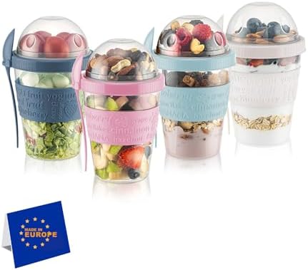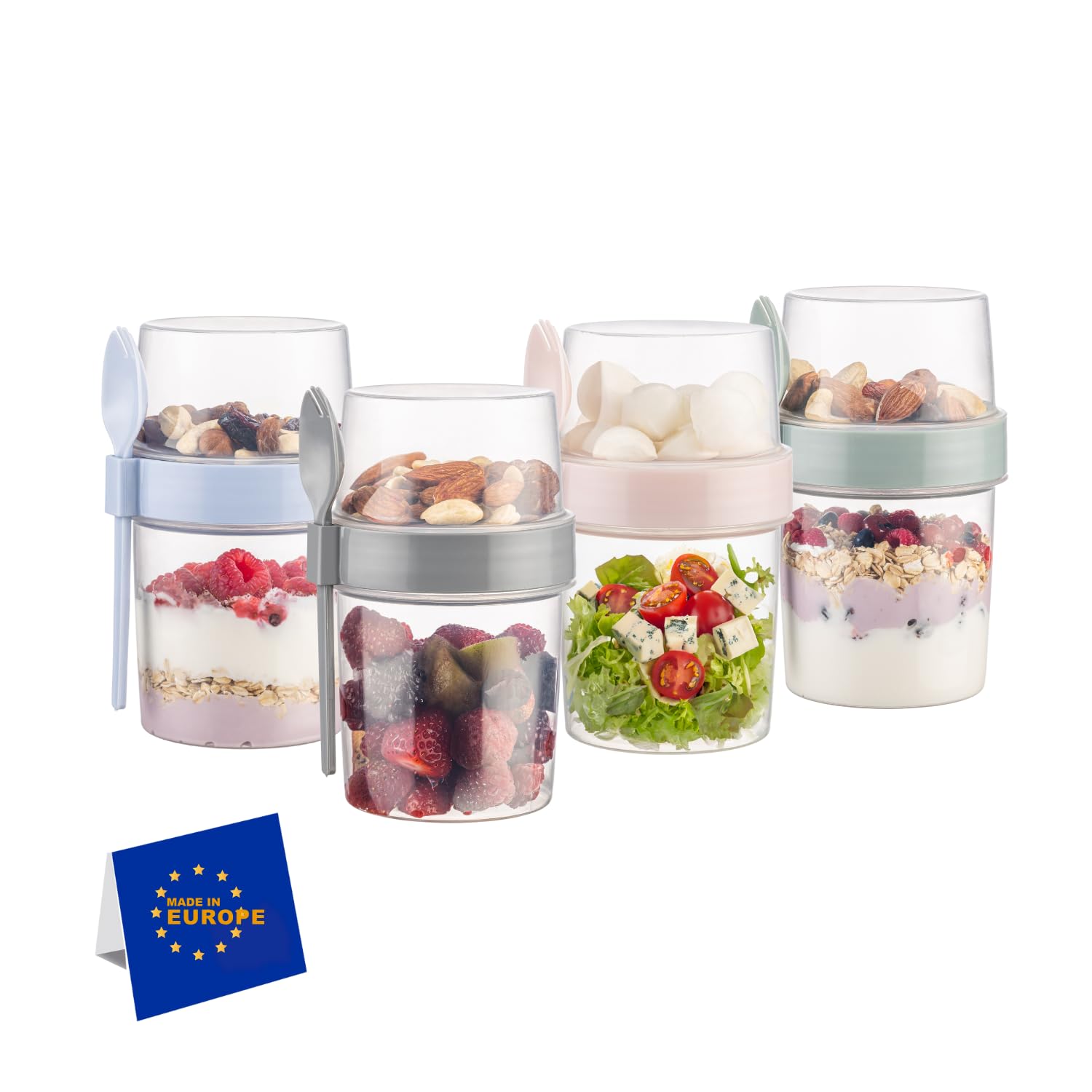 IDOBY Müslibecher 4er-Set 550ml - BPA-freie Joghurtbecher Mit Löffel Für Unterwegs