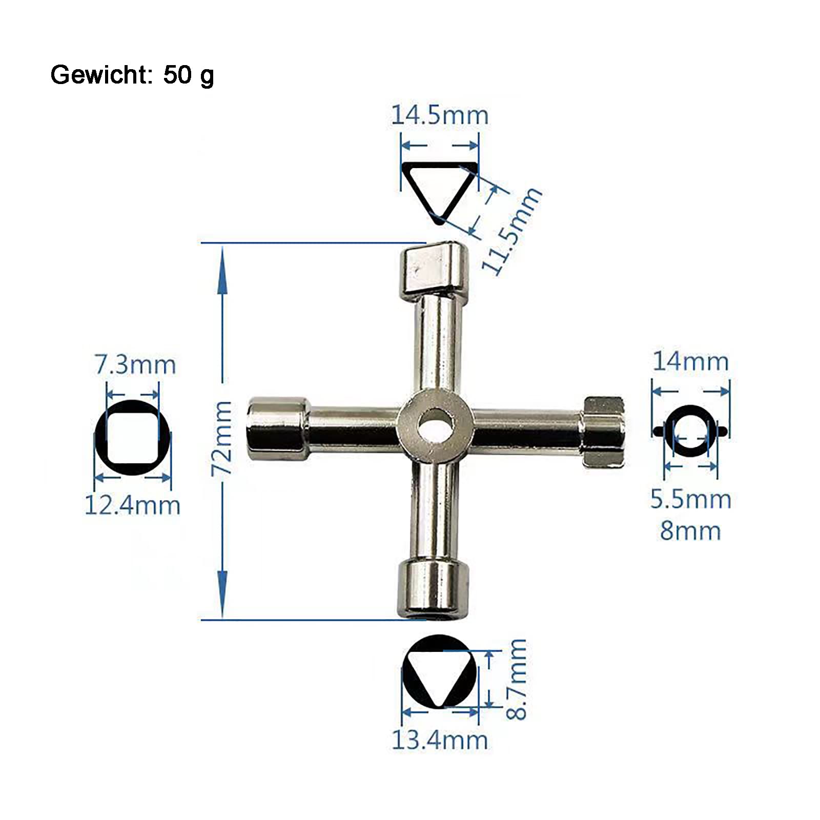 Der praktische Alleskönner! Dieser 4-in-1 Kreuzschlüssel hat zwei Vierkant-Größen, einen Vierkant-Knopf und ein Dreieck - für alle möglichen Schrauben und Ventile. Aus verzinkter Zinklegierung, rostfrei und mega stabil. Nur 86,8x60mm groß - passt in jede Werkzeugtasche. Perfekt für Schaltschränke, Wasserzähler, Gasventile, Aufzüge und Heizkörper. Ob du Techniker, Handwerker oder Heimwerker bist - damit kommst du überall rein! Einfach in die Tasche stecken und immer dabei haben. Bevor du kaufst, check die Passform für deine Geräte! So ein praktisches Teil sollte jeder haben!