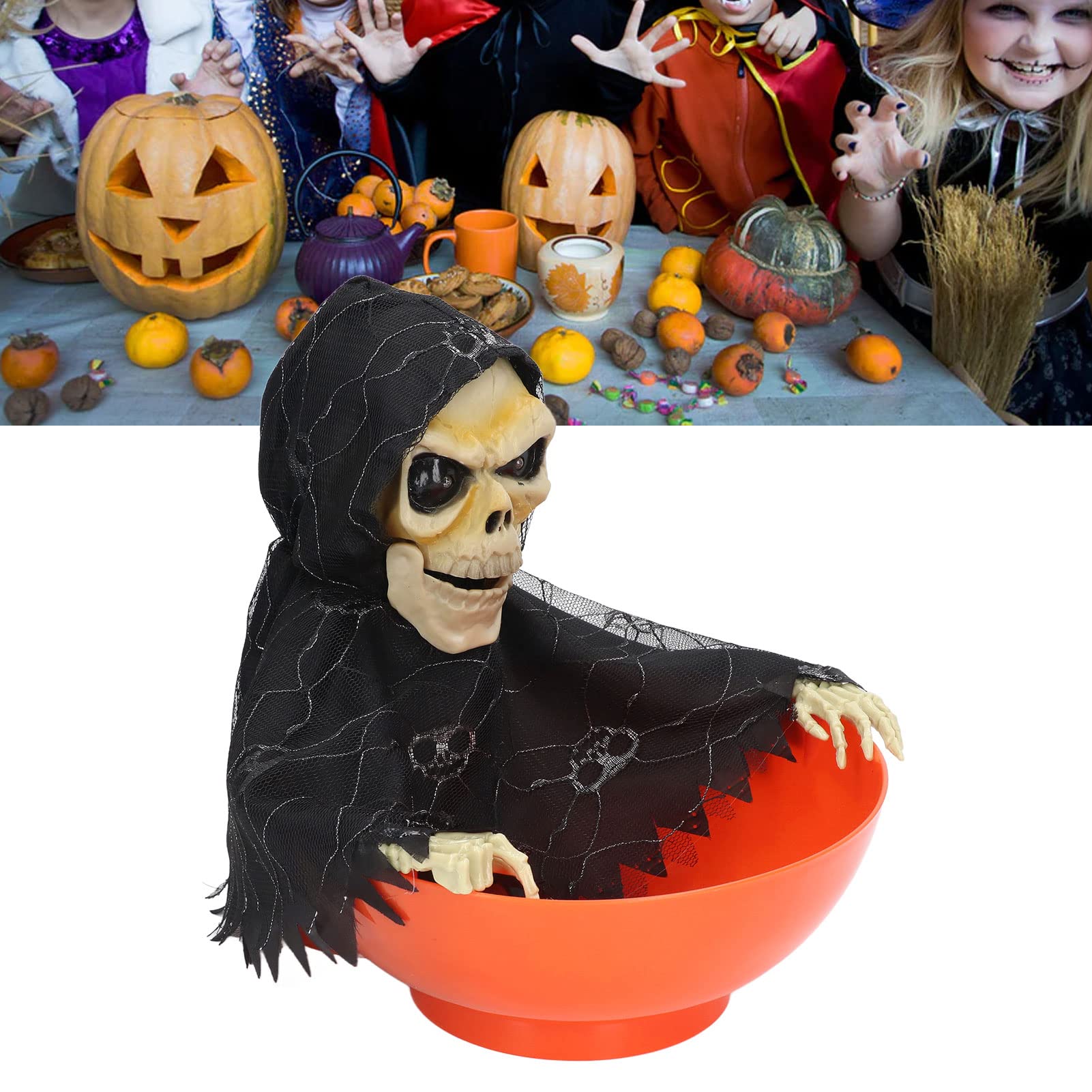 Diese Halloween-Bonbonschüssel ist der absolute Hit für jede Gruselparty! Die Geisterhand leuchtet in gruseligen Farben und macht dazu noch schreckliche Geräusche - perfekt um deine Gäste zu erschrecken. Mit 3 AA Batterien (nicht im Lieferumfang) betrieben, ideal für Süßes-oder-Saures. Groß genug für viele Süßigkeiten und sorgt für eine super Stimmung auf jeder Halloween-Party. Ob für zu Hause, im Fluchtraum oder auf der Mottoparty - diese Schüssel ist immer ein Blickfang. Einfach genial für alle, die es richtig gruselig mögen!