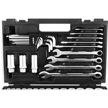 Wow, dieses 46-teilige Steckschlüssel-Set hat wirklich alles, was du für Reparaturen brauchst! Von Autos über Möbel bis zu Fahrrädern - damit bist du für jeden Einsatz gewappnet. Enthalten sind Nüsse von 4-14mm, verschiedene Bits (Torx, Kreuzschlitz, Sechskant) und praktische Verlängerungen. Alles aus hochwertigem Edelstahl mit spiegelverchromter Oberfläche - rostfrei und mega langlebig. Die Ratsche liegt super in der Hand und die praktische Aufbewahrungsbox sorgt für Ordnung. Kein langes Suchen mehr - jedes Teil hat seinen festen Platz. Perfekt für Profis und Hobby-Heimwerker gleichermaßen. Mit 1,3kg Gewicht ist das Set auch noch angenehm zu transportieren. Ein echtes Allround-Talent für deine Werkstatt!