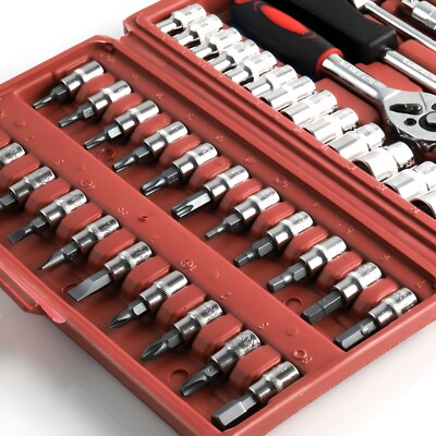 Retoo Steckschlüssel-Set 46-teilig - Komplett-Werkzeugsatz Mit Nüssen Und Bits Für Heimwerker