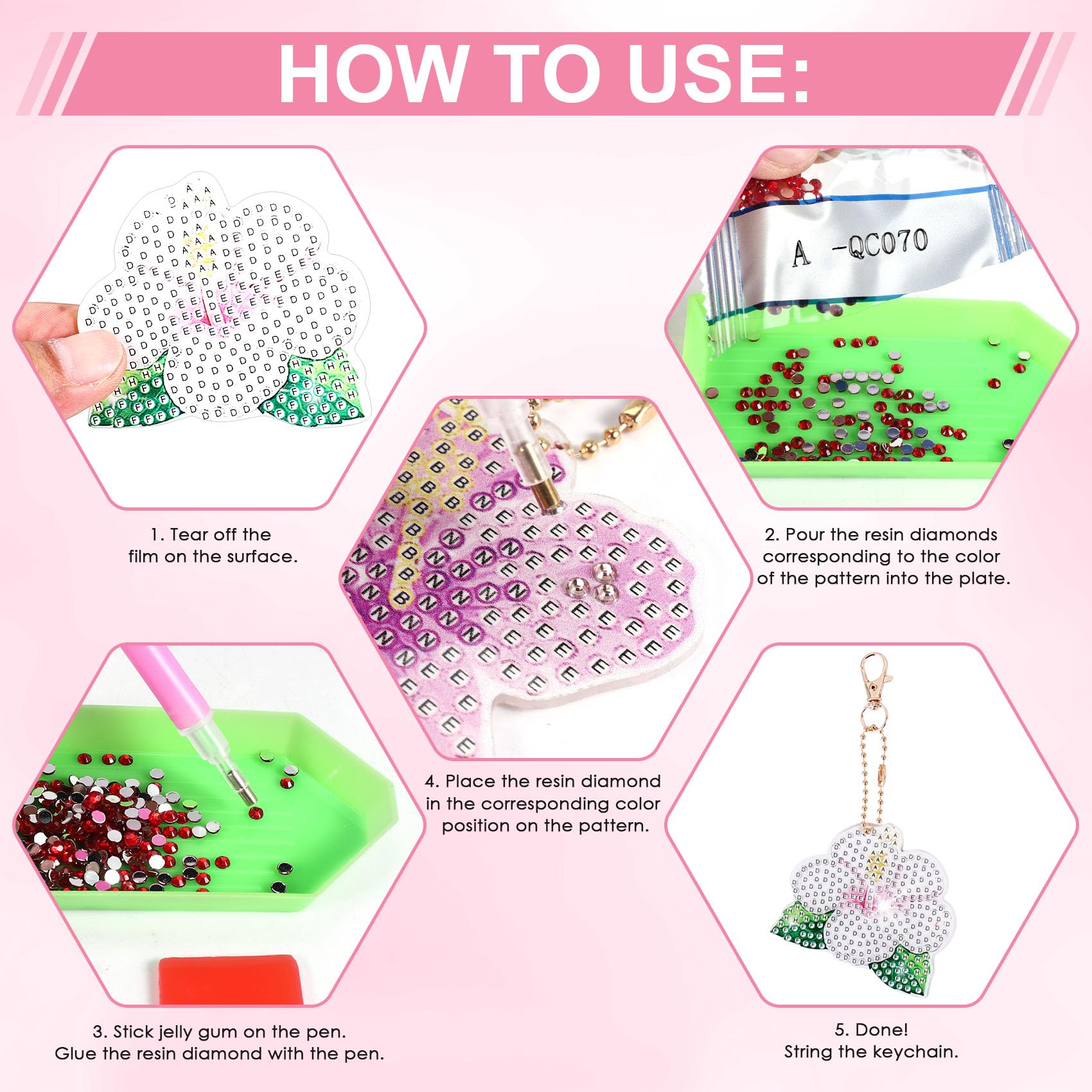 Wobekuy 10x DIY Schlüsselanhänger - 5D Diamond Malerei Set Mit Blumen-Designs