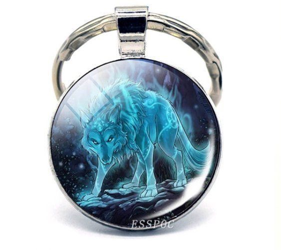 Wolf Schlüsselanhänger Set - 2 Stück Doppelseitig Mit Glaskugel Design
