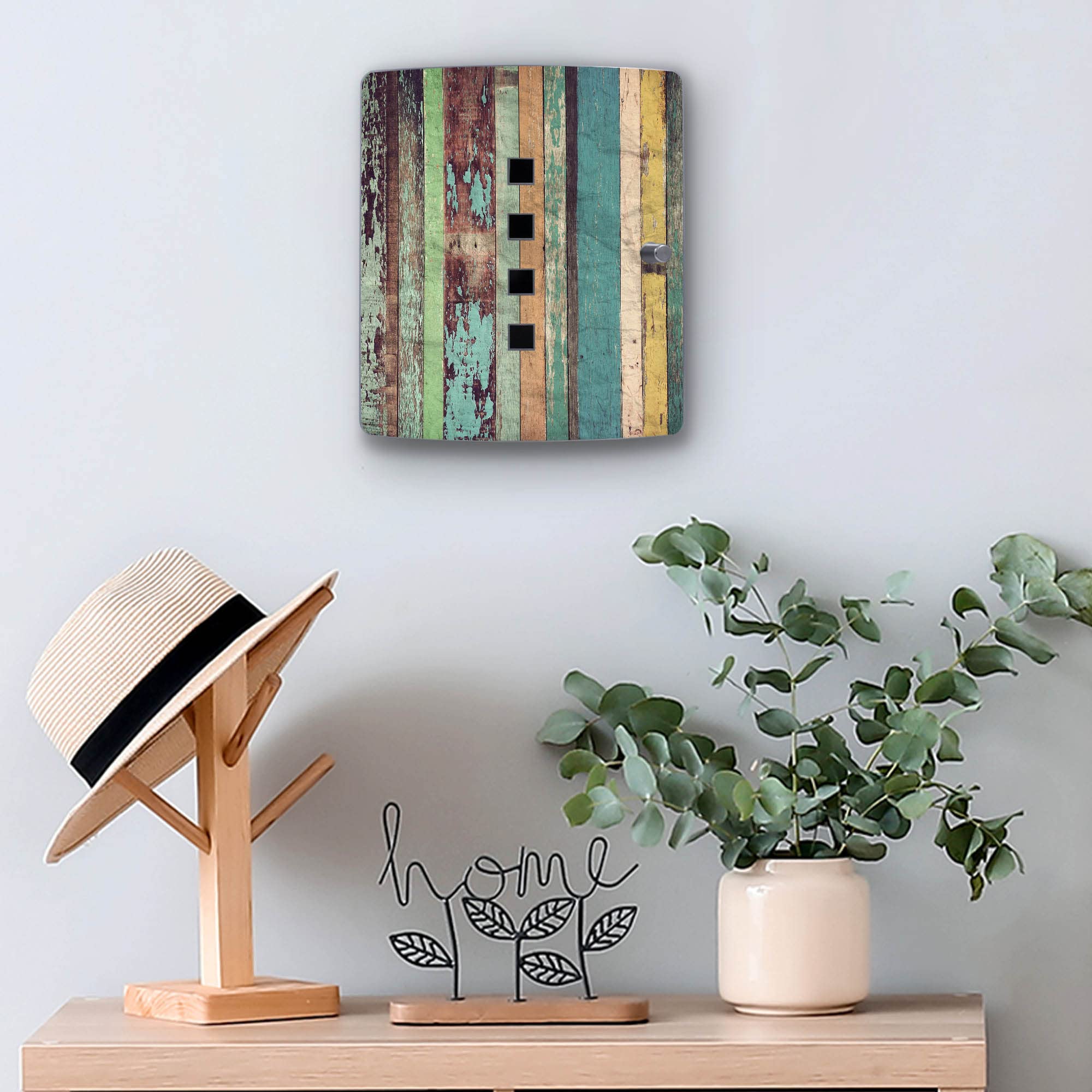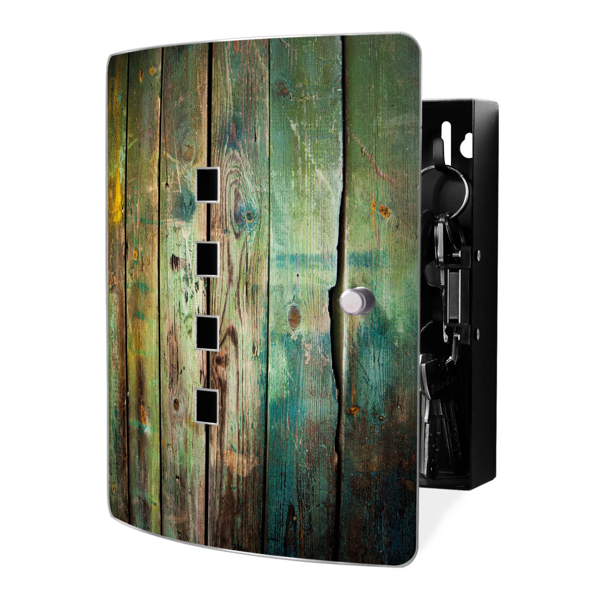Schlüsselchaos ade! Der banjado Schlüsselkasten bringt Ordnung in dein Zuhause - stylisch und praktisch zugleich. \\n\\nPlatz für bis zu 10 Schlüssel - an zwei Reihen mit je 5 Haken. Endlich findest du immer sofort, was du suchst! \\n\\nDas wunderschöne Buddha-Motiv in Gold macht die Box zum echten Hingucker. Aus hochwertigem Edelstahl mit schwarzem Stahlgehäuse. \\n\\nMagnetverschluss - stufenlos einstellbar, öffnet und schließt super leicht. 65° Öffnungswinkel - gut erreichbar. \\n\\nMade in Germany - in einer sächsischen Manufaktur von Hand veredelt. Die Motivfolie ist lösungsmittelfrei und hält ewig. \\n\\nMaße: 24x21,5x7cm - nicht zu groß, nicht zu klein. Mit passendem Montagematerial - sofort einsatzbereit! \\n\\nOrdnung muss sein - und mit dieser Box macht sie sogar Spaß!