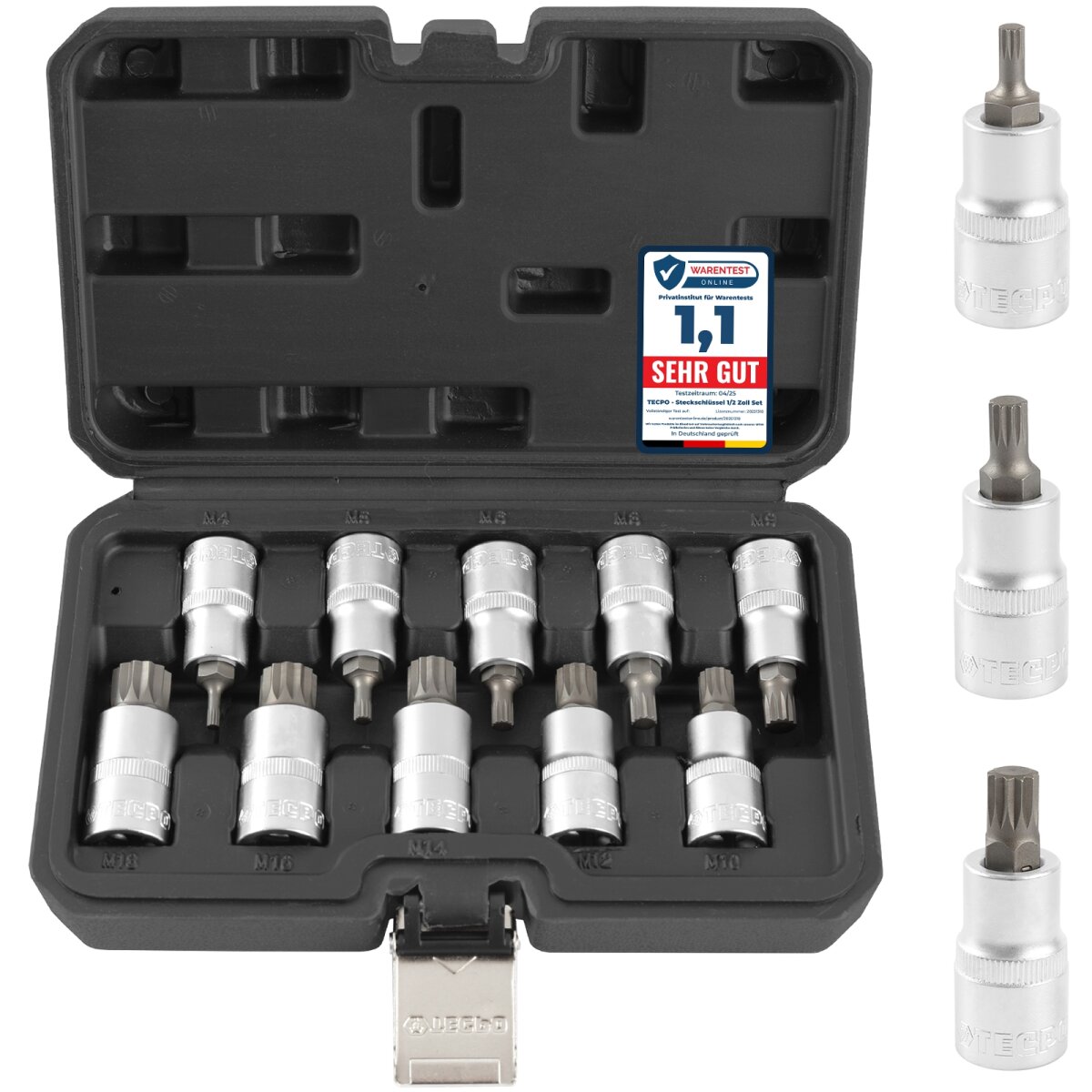 Hey du Heimwerker! Suchst du ein praktisches Steckschlüsselset für alle möglichen Reparaturen? Der kwb Kraftixx Steckschlüsselsatz mit 16 Teilen ist genau das Richtige! Im Set findest du 13 Steckschlüsseleinsätze von 4-13 mm, eine 50 mm Verlängerung, eine Umschaltknarre und eine praktische Schnell-Drehscheibe. Alles im kompakten 1/4\ Antrieb - perfekt für Arbeiten am Motorrad, Fahrrad oder für kleine Reparaturen im Haushalt. Die Teile liegen super in der Hand und sind robust verarbeitet. Verstaut ist alles in einer schwarzen Box, sodass du dein Werkzeug immer ordentlich aufbewahren kannst. Egal ob du ein Profi bist oder gerade erst mit dem Heimwerken anfängst - dieses Set hat für die meisten Standardarbeiten das passende Werkzeug parat. Einfach auspacken und loslegen! Perfekt für die Werkstatt, Garage oder für unterwegs. Mit dem kwb Kraftixx bist du für viele Reparaturen bestens ausgerüstet!