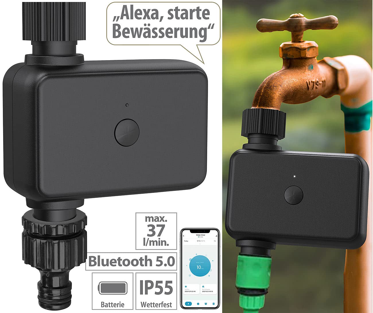 Deine Pflanzen werden's dir danken! Mit diesen beiden Royal Gardineer Bewässerungscomputern steuerst du deine Gartenbewässerung bequem per App (Android & iOS). Einfach per Bluetooth verbinden und schon bestimmst du von der Couch aus wann und wie lange gegossen wird. Vier Modi stehen zur Verfügung: Dauer, Zyklus, Startzeit und Regenpause (bis 7 Tage). Wetterfest mit IP66 - hält also auch mal einen Schauer aus. Passt an alle üblichen Wasseranschlüsse mit 3/4\-Gewinde. Batteriebetrieben (2x AA, nicht im Lieferumfang). Reichweite: 10 Meter. Mit 8 Sprachen including Deutsch. Maße: 16x11x5,5 cm. Perfekt für Urlaubszeiten oder heiße Tage - dein Garten bleibt immer frisch und grün! Getestet und für \sehr gut\ befunden von Smartphone Magazin & Co.