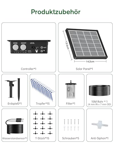 Solar Bewässerungssystem Mit 15 Tropfern - Automatische Balkonbewässerung Mit Timer