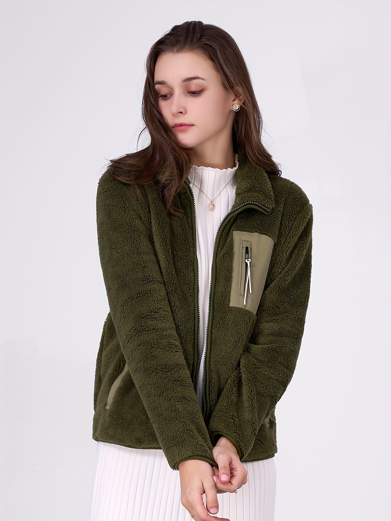 Damen Winterjacke Fleece - Lässiger Polar Fleece Hoodie Mit Reißverschluss