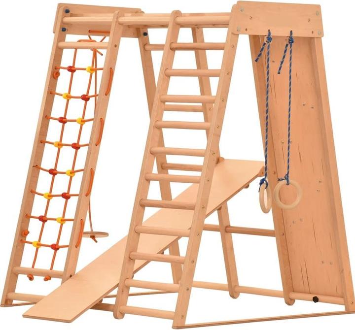 Dieses FUNLIO Klettergerüst ist der absolute Hit für Kinder von 2-5 Jahren! Ein 5-in-1 Set mit Kletterdreieck, Rutsche, Bogen und Kletterfelsen. Alles aus massivem Holz, super stabil und hält bis zu 60kg aus. Die Rutsche hat verstellbare Neigung und die Kletterfelsen sind extra griffig. Das Beste: Es ist faltbar! Wenn die Kinder nicht spielen, einfach zusammenklappen und platzsparend wegräumen. Mit vormontierten Teilen - in nur 30 Minuten aufgebaut. Fördert die Motorik und macht riesig Spaß. Perfekt fürs Kinderzimmer, auch wenn's mal regnet. CE und CPC zertifiziert - also sicher. Ein Traum für jedes Kind und ein super Geschenk zu Weihnachten oder Geburtstag!