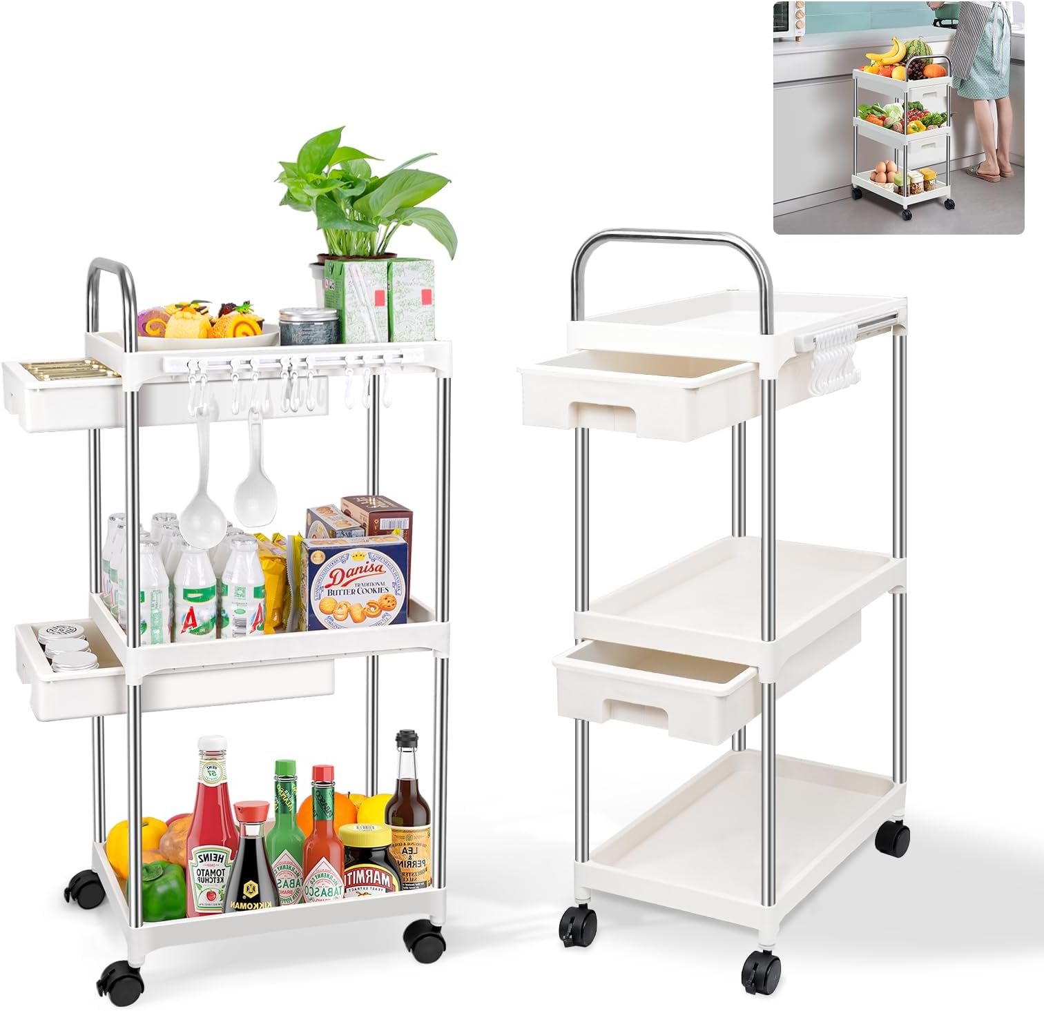 Ylnailky Rollwagen 3-stöckig - Mobiler Servierwagen Für Küche & Bad
