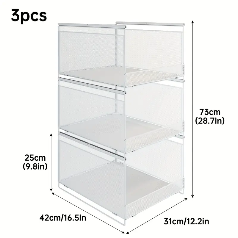 Schluss mit dem Chaos im Schrank! Dieser 5-stöckige Organizer bringt Ordnung in dein Zuhause. Die stapelbaren Körbe mit Metallrahmen sind super stabil und lassen sich bis zu 5 Ebenen hoch stapeln.