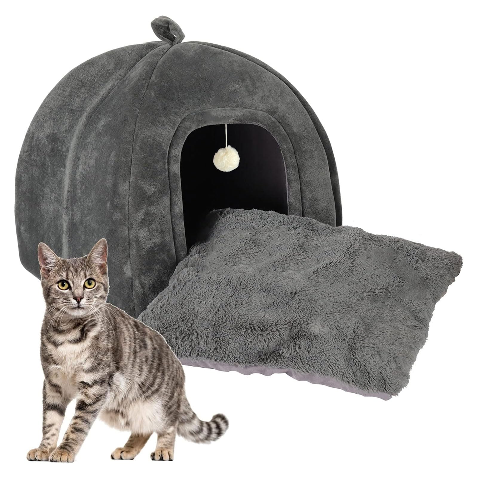 Faltbares 3-stöckiges Katzenhaus Mit Kratzbrett - Graue Katzenhöhle Für Kleine & Mittlere Katzen