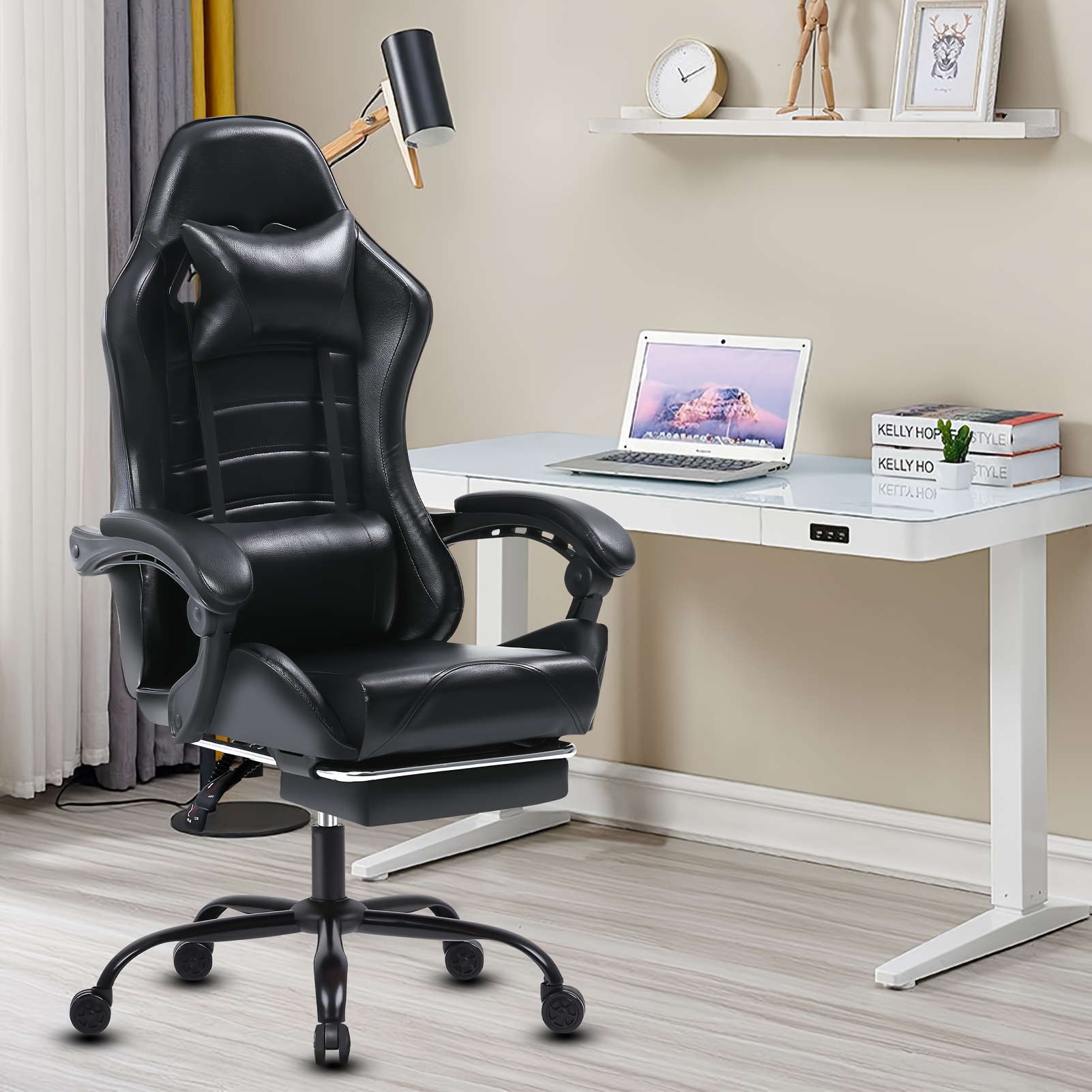 Game in absoluten Komfort! Dieser Gaming Stuhl hat alles, was du für lange Sessions brauchst: verstellbare Kopf- und Lendenstütze, ausziehbare Fußstütze und neigbare Rückenlehne von 90°-165°. Hält bis zu 160kg aus - ideal auch für große Gamer. Aus hochwertigem PU-Leder mit 5cm Polsterung für maximalen Sitzkomfort. 360° Drehfunktion und leise Rollen für perfekte Bewegungsfreiheit. Verfügbar in mehreren coolen Farben. Dein Thron für Siege im eSports oder entspanntes Arbeiten im Home Office!