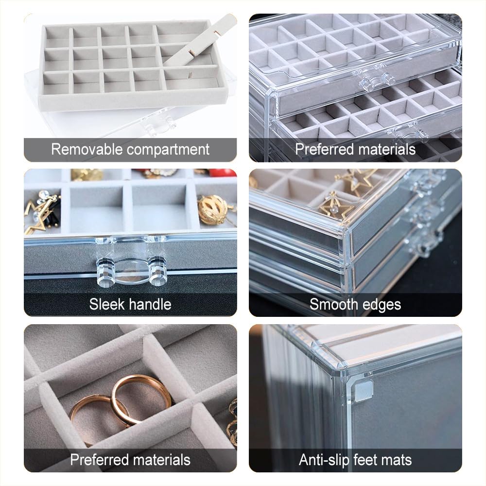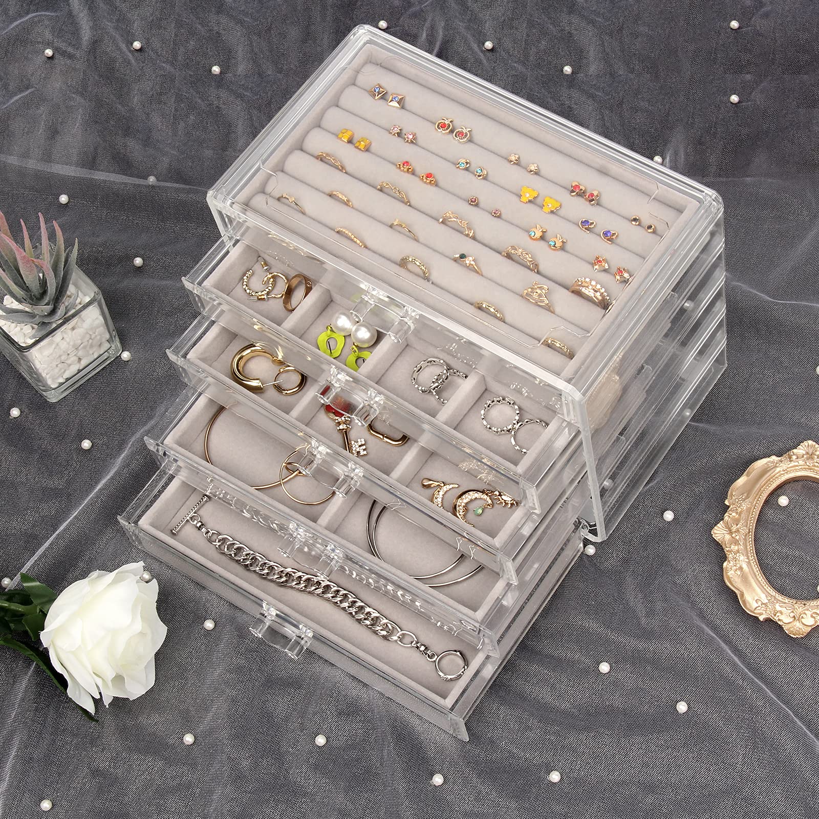Acryl Schmuckkästchen Mit 5 Schubladen - 90 Fächer Für Ohrringe, Ringe & Ketten
