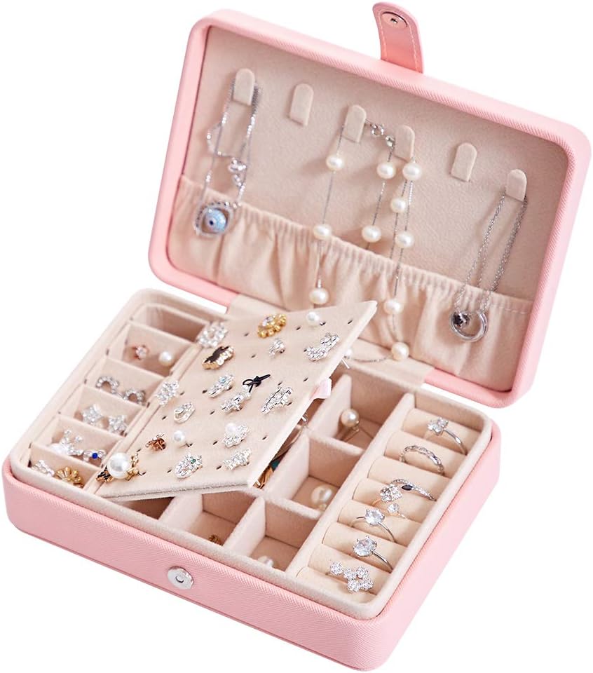 DIFLAX Schmuckkästchen Rosa - Tragbarer Schmuckorganizer Für Reisen Mit Ringfach & Ohrringhalter