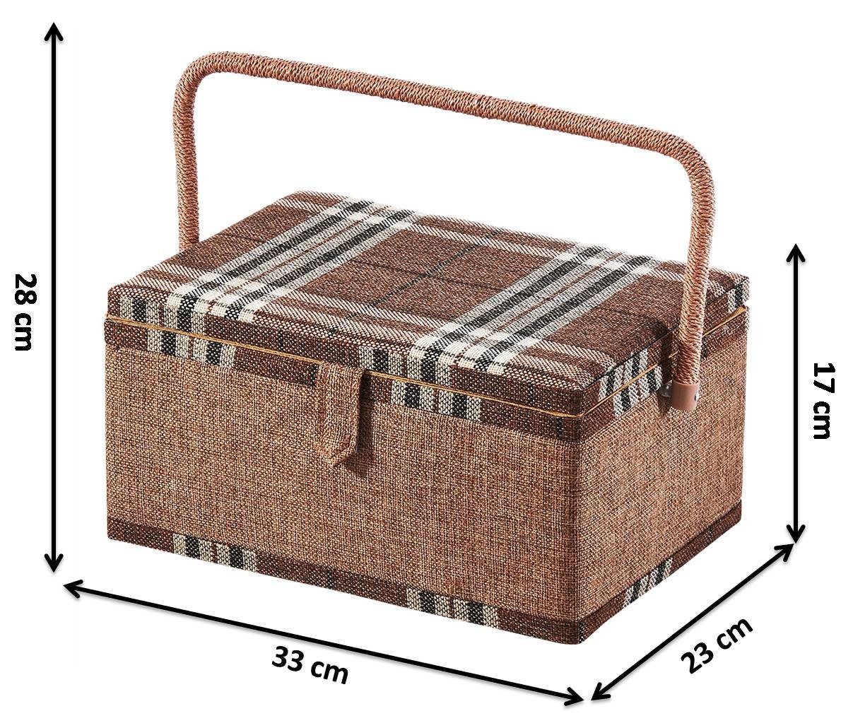Wow, dieses Nähkästchen von Korbhaus Gesthüsen ist einfach nur praktisch! Der Handarbeitskorb kombiniert traditionelles Flechthandwerk mit moderner Funktionalität. Drinnen wartet eine samtweiche Ausstattung mit integriertem Nadelkissen - ja, sogar Nadeln sind schon dabei! Der gepolsterte Deckel dient zusätzlich als Steckfläche für Nadeln, und die Ablage mit Einteilung aus Kunststoff hält alles schön ordentlich. Die Filzfüßchen schonen deine Möbel, und der Klettverschluss hält alles sicher verschlossen. Mit Maßen von 29 cm Breite, 20 cm Tiefe und 16 cm Höhe (Griffhöhe 25 cm) findet das Körbchen überall Platz. Perfekt nicht nur für Nähutensilien, sondern auch als Aufbewahrung für Schmuck, Briefe oder Rezepte. Ein richtiges Qualitätsstück aus der Sonderserie - nicht zu vergleichen mit billiger Importware!