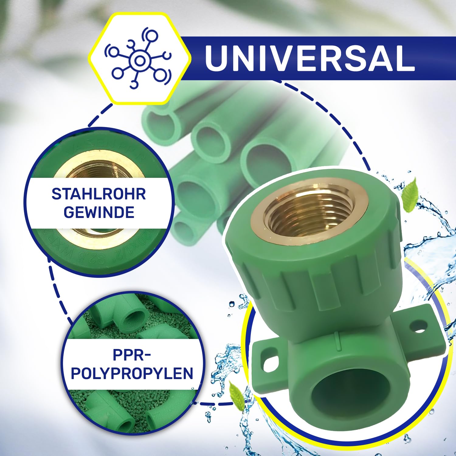 Hey Heimwerker! Diese 90-Grad-Winkelstücke von MONTERAL sind genau das, was du für deine Wasserleitungen brauchst. Im Set bekommst du 10 Stück mit 20mm Durchmesser auf beiden Seiten - perfekt zum Verbinden von Polypropylen-Rohren. Hergestellt aus schlagfestem PPR-Material mit Messinggewindeeinsätzen, die absolut rostfrei und chemikalienbeständig sind. Selbst bei UV-Strahlung machen die Teile schlapp! Einfach zwischen zwei Rohre setzen und schon ändert sich die Richtung deiner Leitung um 90 Grad. Super für Warm- und Kaltwasser-Systeme in Haushalt oder Industrie. Korrosionsbeständig, leicht und mega langlebig - genau das richtige Zubehör für dein nächstes Installationsprojekt. Ob Heizung, Kühlung oder sanitäre Anlagen - mit diesen Verbindern bist du auf der sicheren Seite!