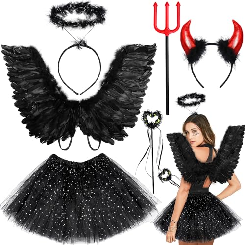 Halloween Kostüm Mädchen Schwarzer Engel - Karnevalskleid Für Kinder 3-12 Jahre