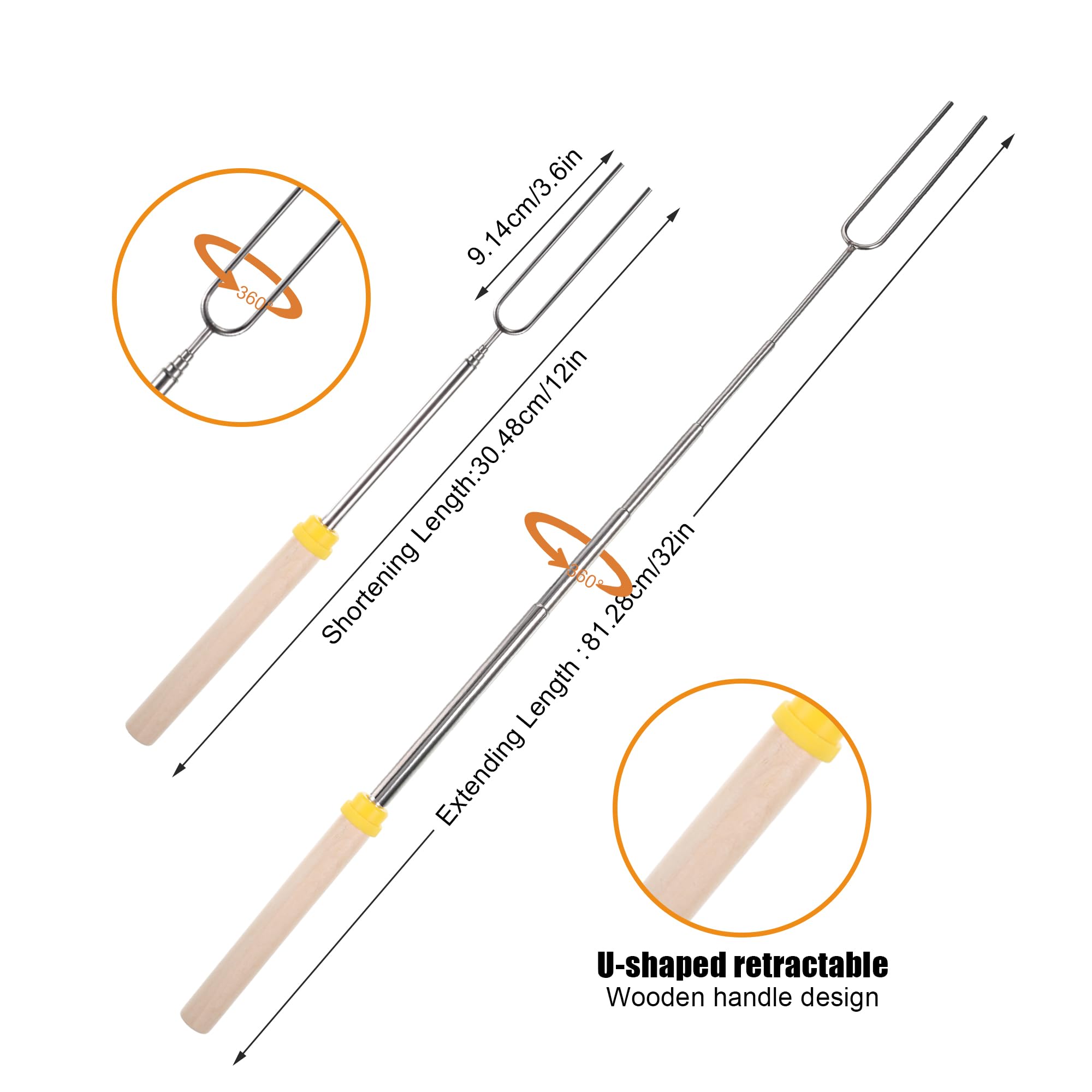 5 Stück Marshmallow Röstgabeln Teleskop - Edelstahl U-Form 31-81cm Für Grill & Lagerfeuer