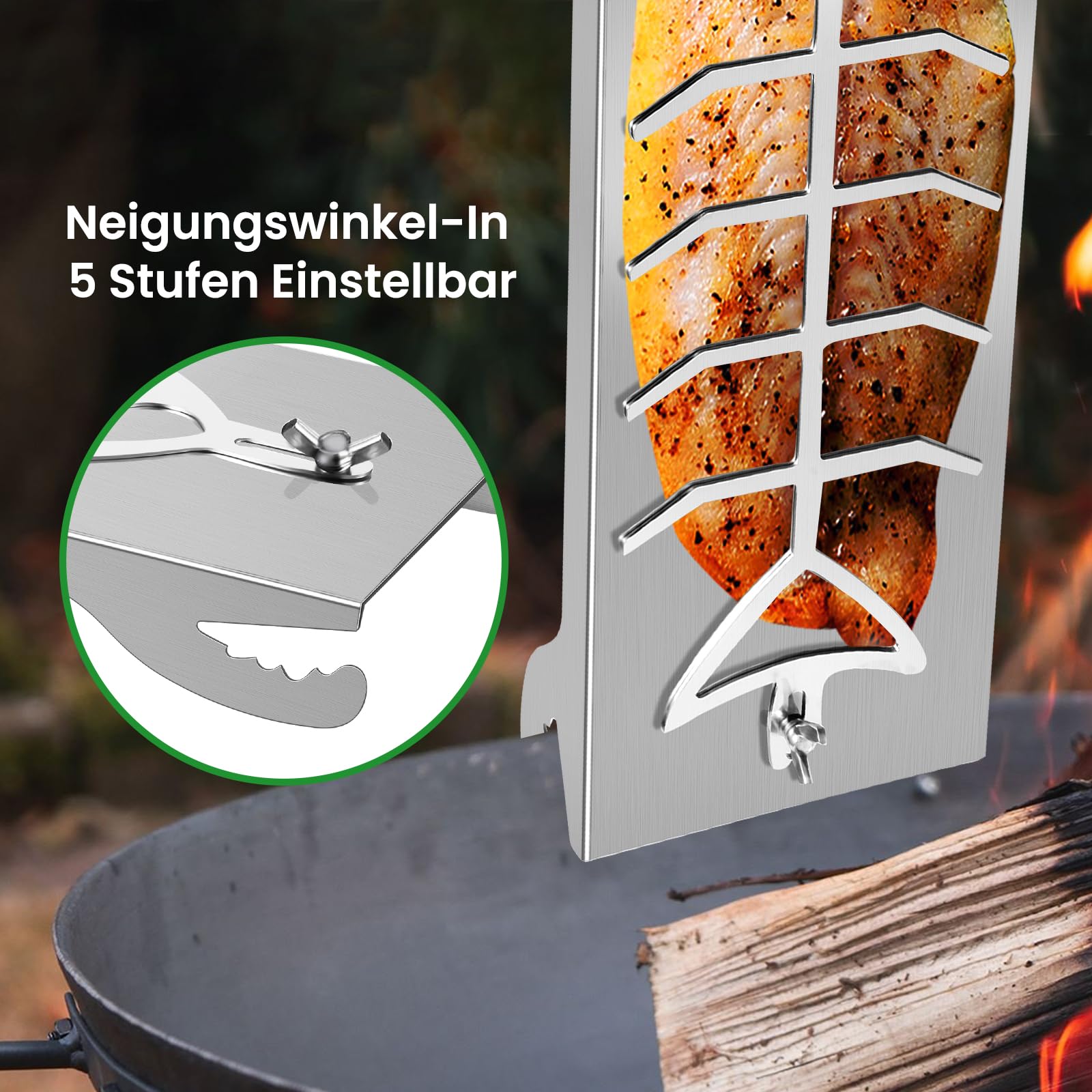WUCHAITOO Edelstahl Flammlachsbrett - 5-stufig Verstellbar Für Grill Und Feuerschale
