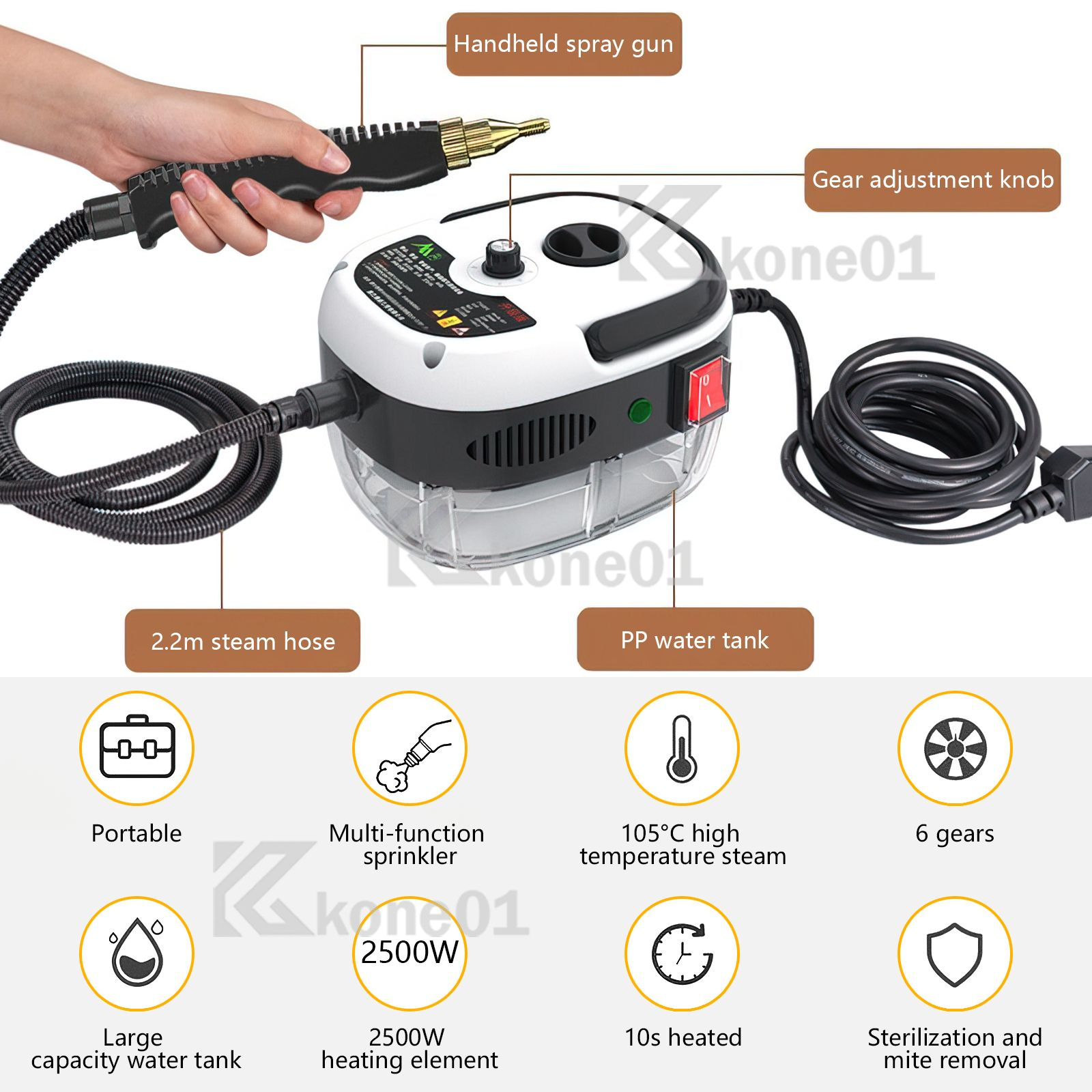 2500W Dampfreiniger - 6-stufige Multifunktions-Reinigungsmaschine Für Haus & Auto