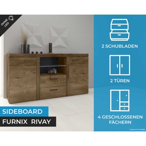 Kommode Lena 2-türig Mit Schubladen - 120cm In Dunkle Eiche Lefkas