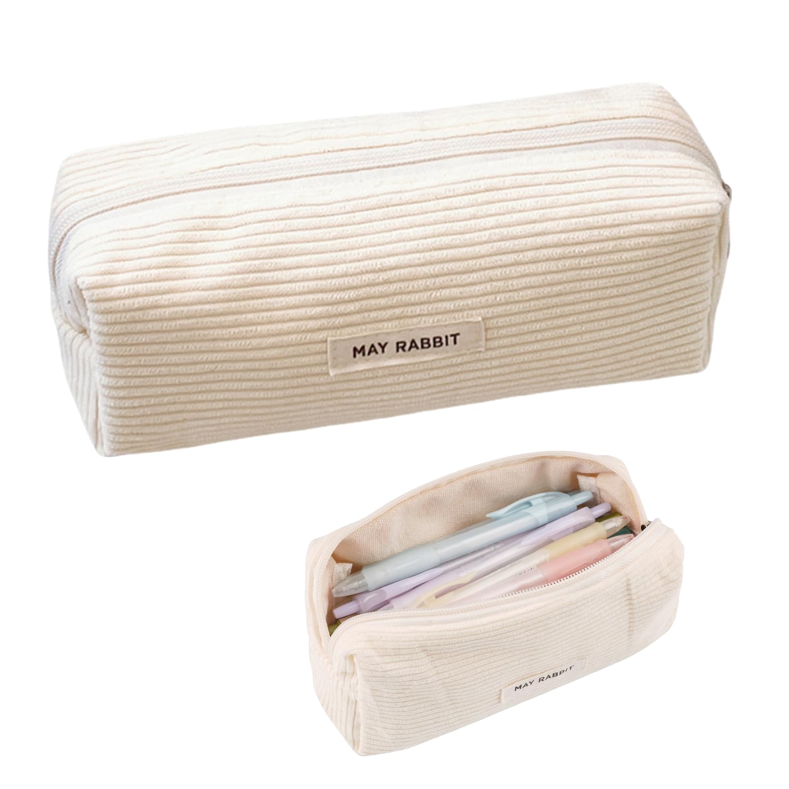 Federmäppchen Große Kapazität 3 Schichten - Mit Geodreieck, Beige, Für Schule & Büro
