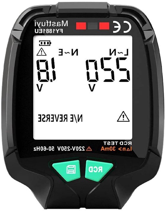 Sicherheit geht vor - mit dem Ailao Steckdosentester checkst du blitzschnell ob deine Steckdosen korrekt verkabelt sind! Das Vollbild-Display zeigt dir sofort 7 verschiedene Zustände an: OK, vertauschte Phase/Nullung, offene Leiter und mehr. Testet auch RCD/FI-Schutzschalter durch Simulation von Erdschlussbedingungen. Misst Spannungen von 30V-250V und speichert bis zu 20 Messwerte. Ein-Knopf-Bedienung - einfach einstecken und sofort siehst du was Sache ist. Kompakt und tragbar, perfekt für Elektriker, Heimwerker oder Hausverwaltungen. Aus flammhemmendem ABS, sicher und langlebig. Ob in Wohnungen, Büros, Schulen oder Werkstätten - mit diesem Tester bist du auf der sicheren Seite. Ein unverzichtbares Tool für jeden, der elektrische Installationen überprüfen möchte!