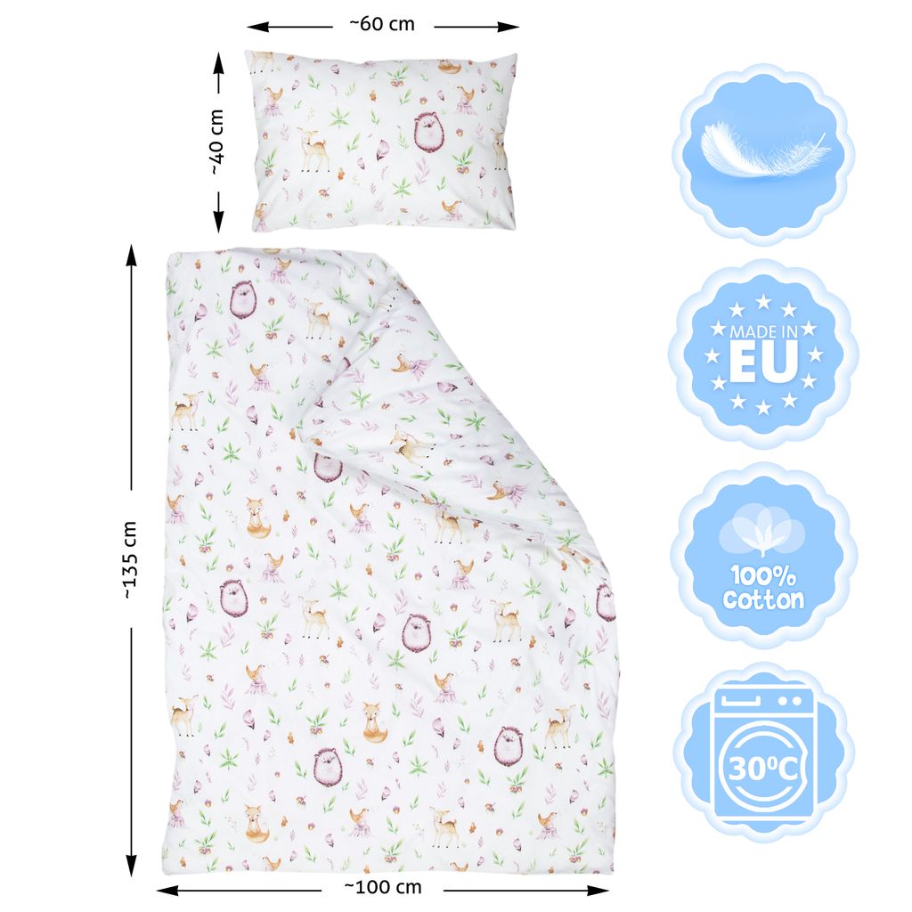 Amilian Kinderbettwäsche 2-teilig 100% Baumwolle - Bettbezug 100x135cm + Kissen 40x60cm