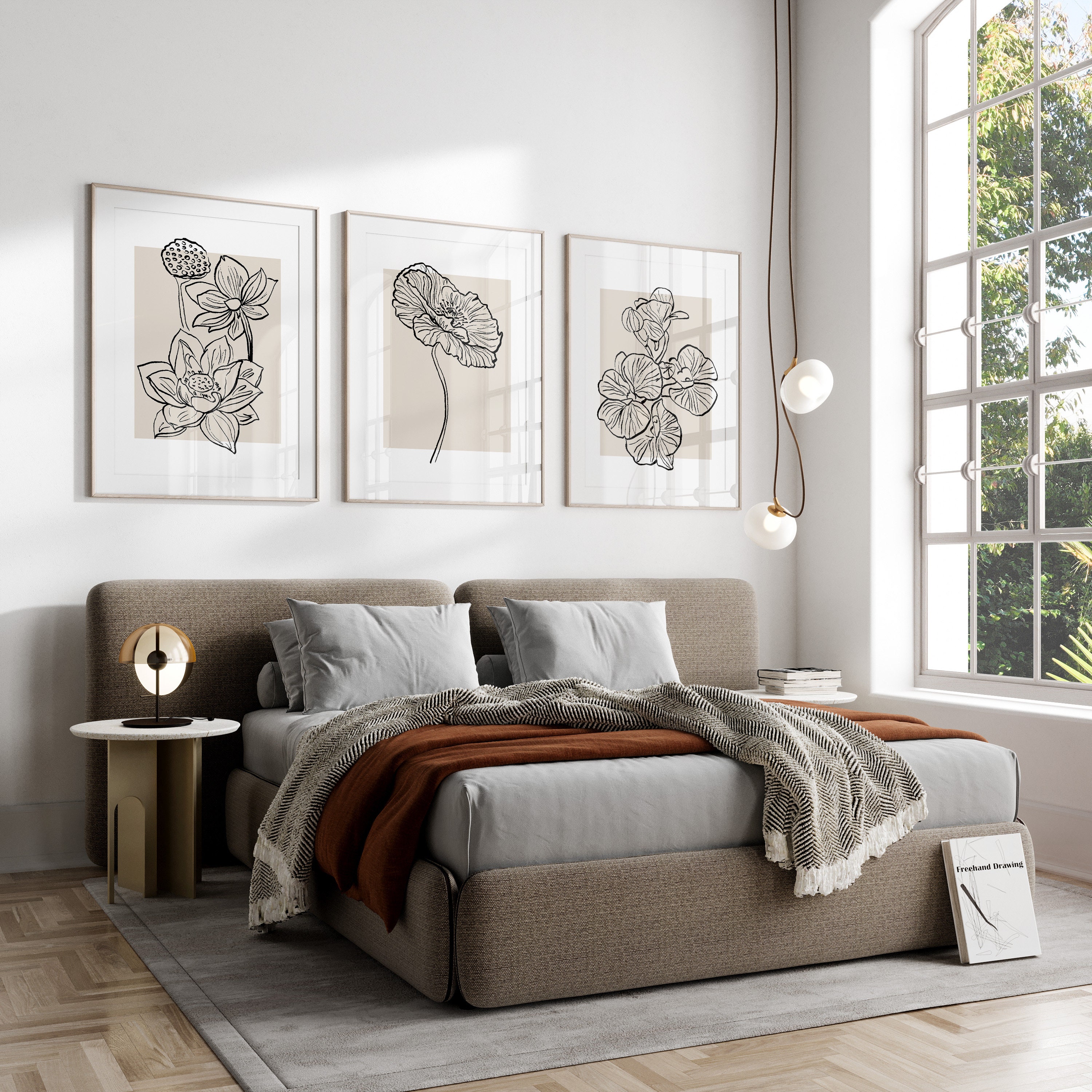 Verwandle deine Wände mit diesem schönen 3-teiligen Wandbild-Set! Botanische Blumen-Motive im modernen Boho-Style, gedruckt auf hochwertiger Leinwand. Jedes Bild misst 40x60cm - perfekt für Wohnzimmer, Schlafzimmer oder Flur. Die natürlichen Beige-Töne passen zu jedem Einrichtungsstil. Einfach aufhängen und sofort mehr Gemütlichkeit genießen. Super als Geschenk oder um dein Zuhause zu verschönern. Ohne Rahmen - such dir einfach passende Rahmen aus!
