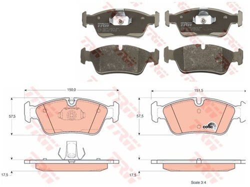 TRW GDB1344 Bremsbelagsatz 4-teilig Für BMW 3er E46 Hinterachse 1997-2005