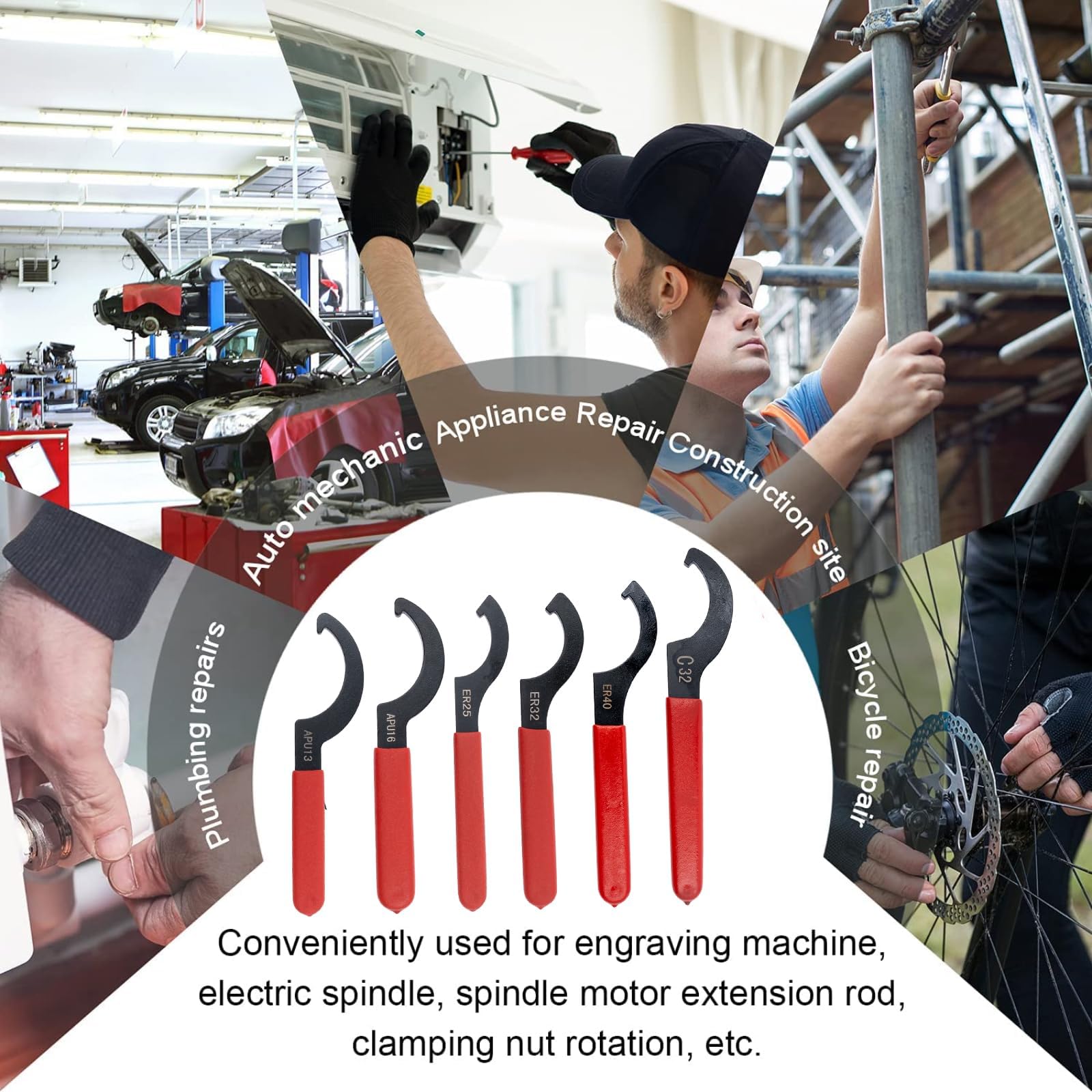 Für alle, die selbst an ihrem Auto schrauben! Dieses 6-teilige Spulenschlüssel-Set in C-Form ist perfekt für Arbeiten an Federungen und Stoßdämpfern. Aus robustem Kohlenstoffstahl mit schwarzer Oxid-Beschichtung - hält ewig und rostet nicht. Die rutschfesten Gummi-Griffe liegen super in der Hand und schützen vor Verletzungen. Mit den speziellen Haken an der Vorderseite greifst du sicher in die seitlichen Löcher und verhinderst Abrutschen. Die sechs Größen (APU13, APU16, ER25, ER32, ER40, C32) passen für die meisten Anwendungen. Ideal für's Festziehen von Muttern an CNC-Maschinen oder Werkzeugaufnahmen. Ob für Toyota-Reparaturen oder andere Autos - damit hast du immer das richtige Werkzeug zur Hand. Ein Must-Have für jede Werkstatt und ein tolles Geschenk für Schrauber-Fans. Macht Reparaturen zum Kinderspiel und spart teure Werkstatt-Besuche!