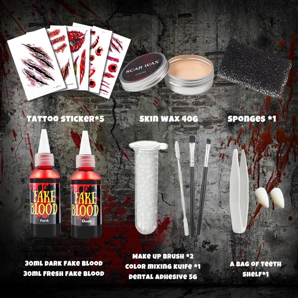 Halloween Schminke Set 16-teilig - Kunstblut & Narbenwachs Für Grusel-Makeup